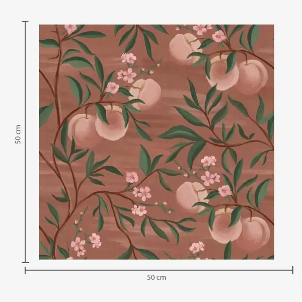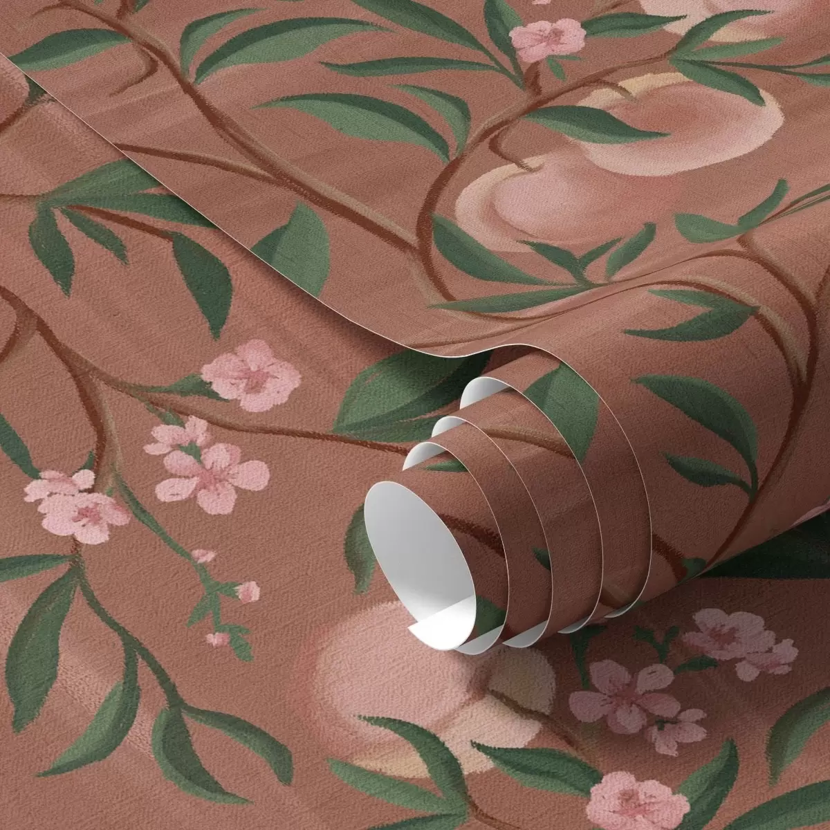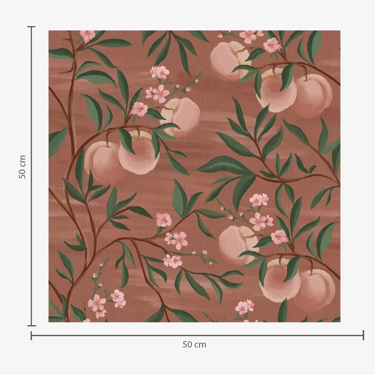 Tapeta Breskve na granama s ružičastim cvjetovima, terakotna podloga br. a00856