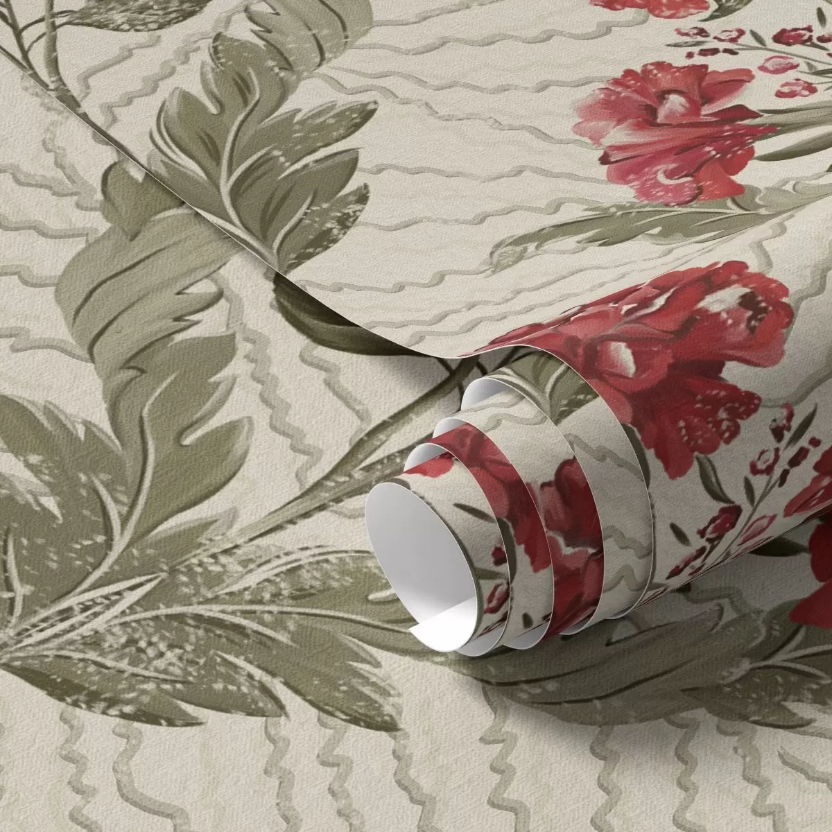 Tapeta Veliki crveni božuri s grafičkom pozadinom, krem tlo br. a00857