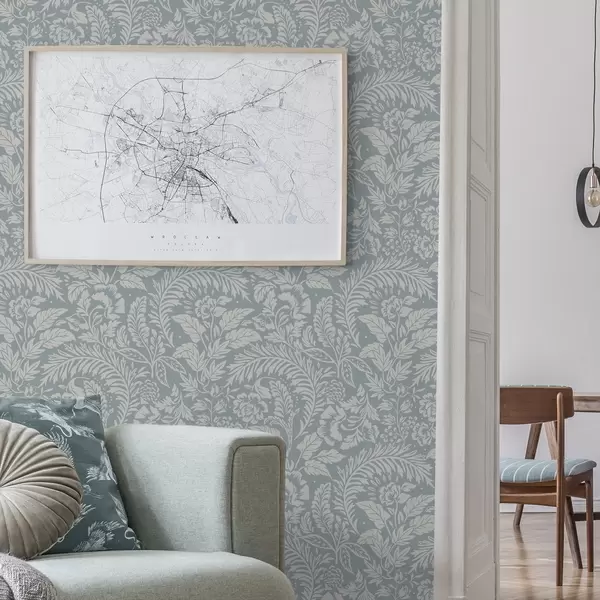Tapeta Jednobojni cvjetni uzorak na sivo-plavoj pozadini br. a00859