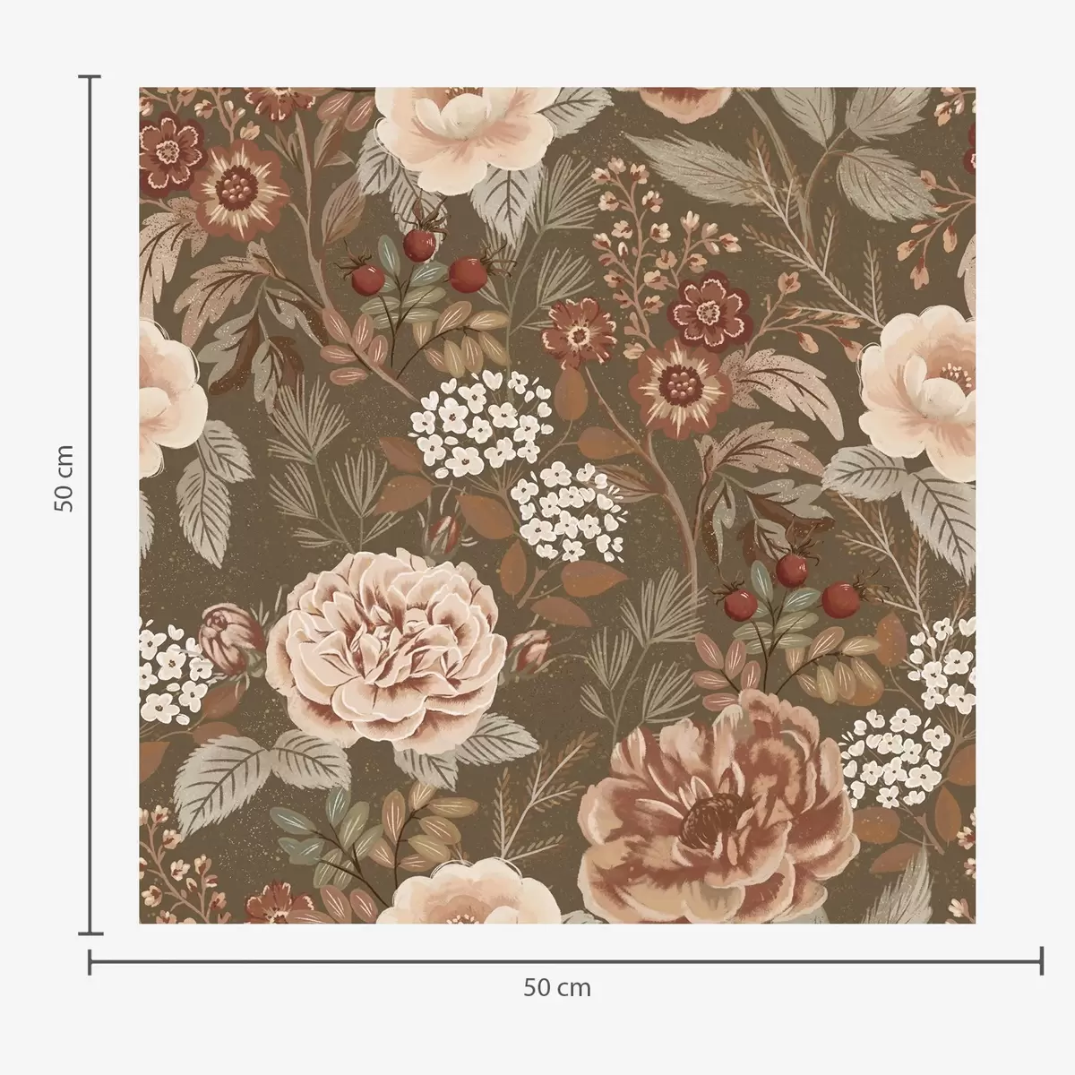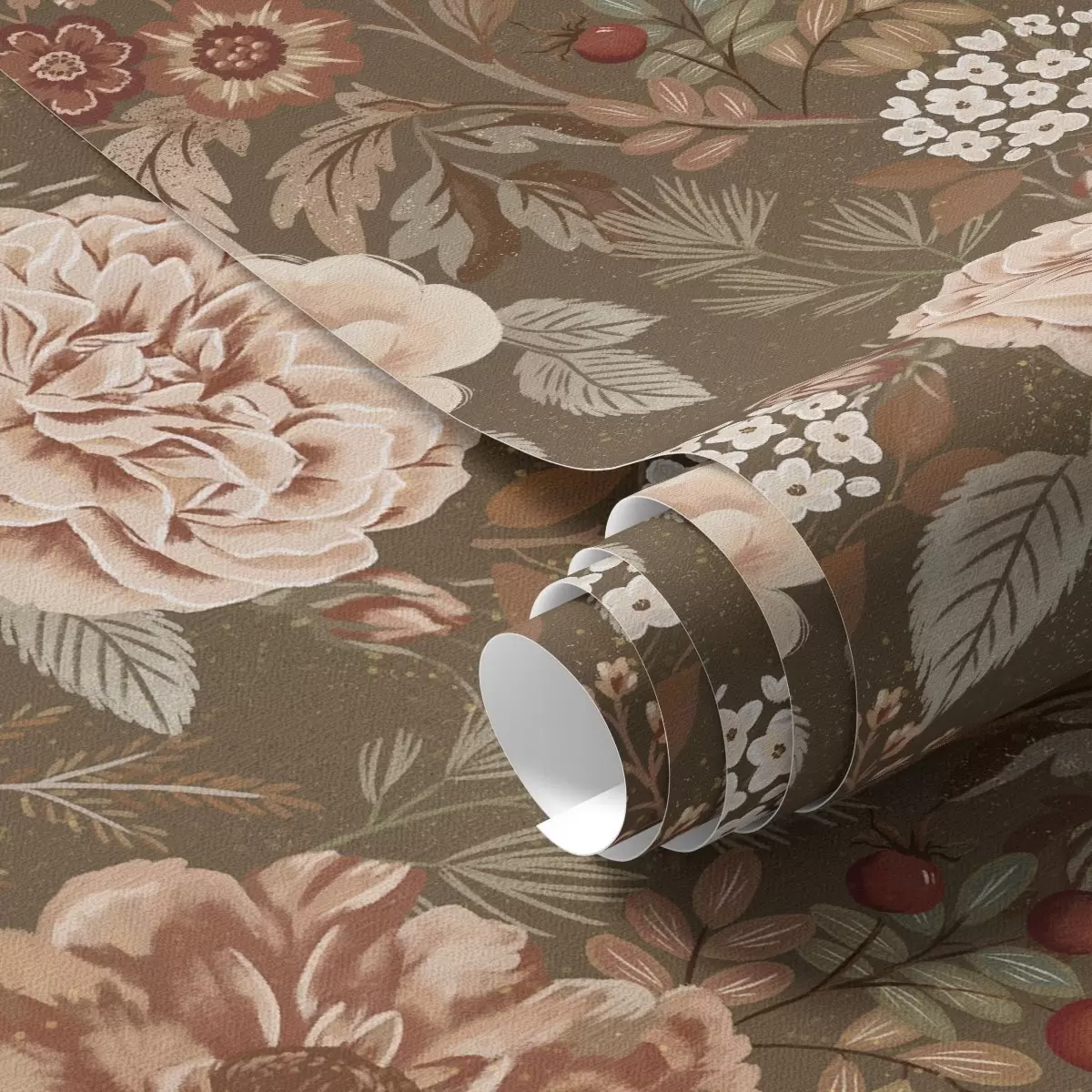 Tapeta Tople ruže i bobice na smeđoj pozadini br. a00868