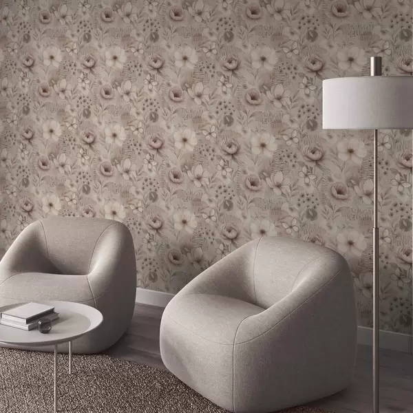 Tapeta Sepija bež cvjetni uzorci s leptirima i linearnim akcentima br. a00870