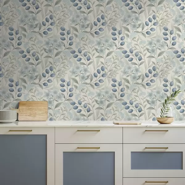 Tapeta Borovnice i svijetlo cvijeće na bjelokosti br. a00872