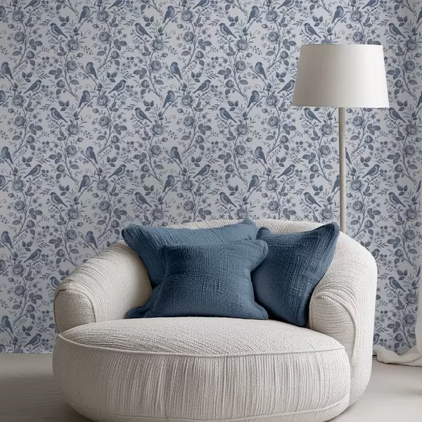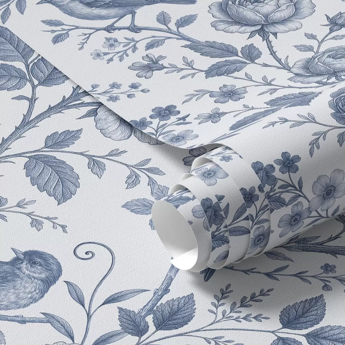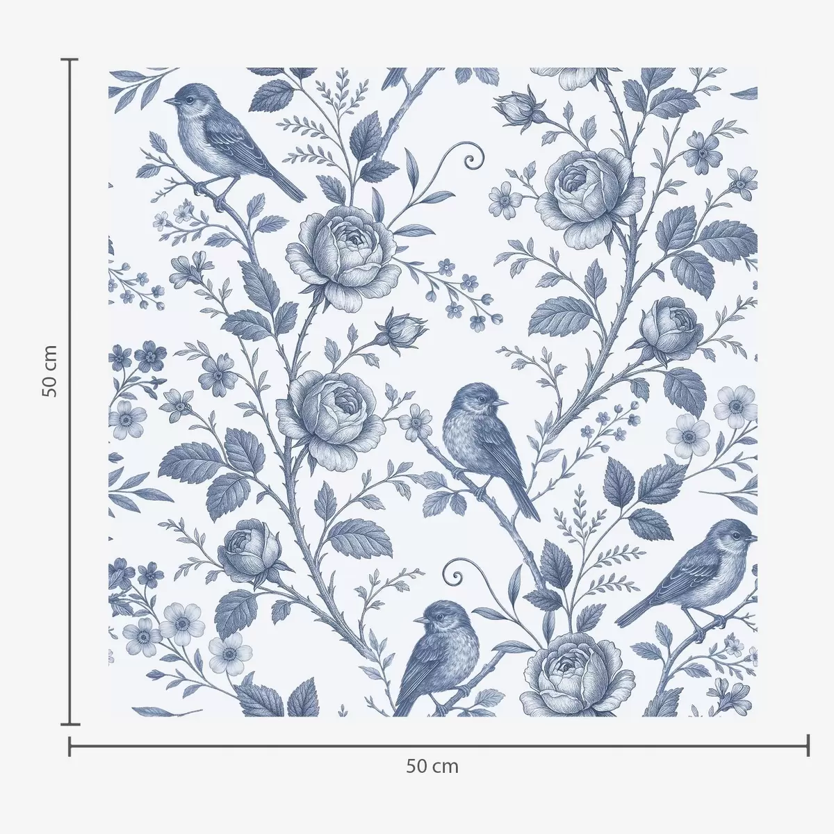 Tapeta Plave ptice toile i ruže na bijelom br. a00873