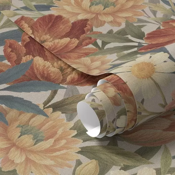 Tapeta Cvjetovi starinskog vrta u toploj terakota i breskvastoj boji br. a00874