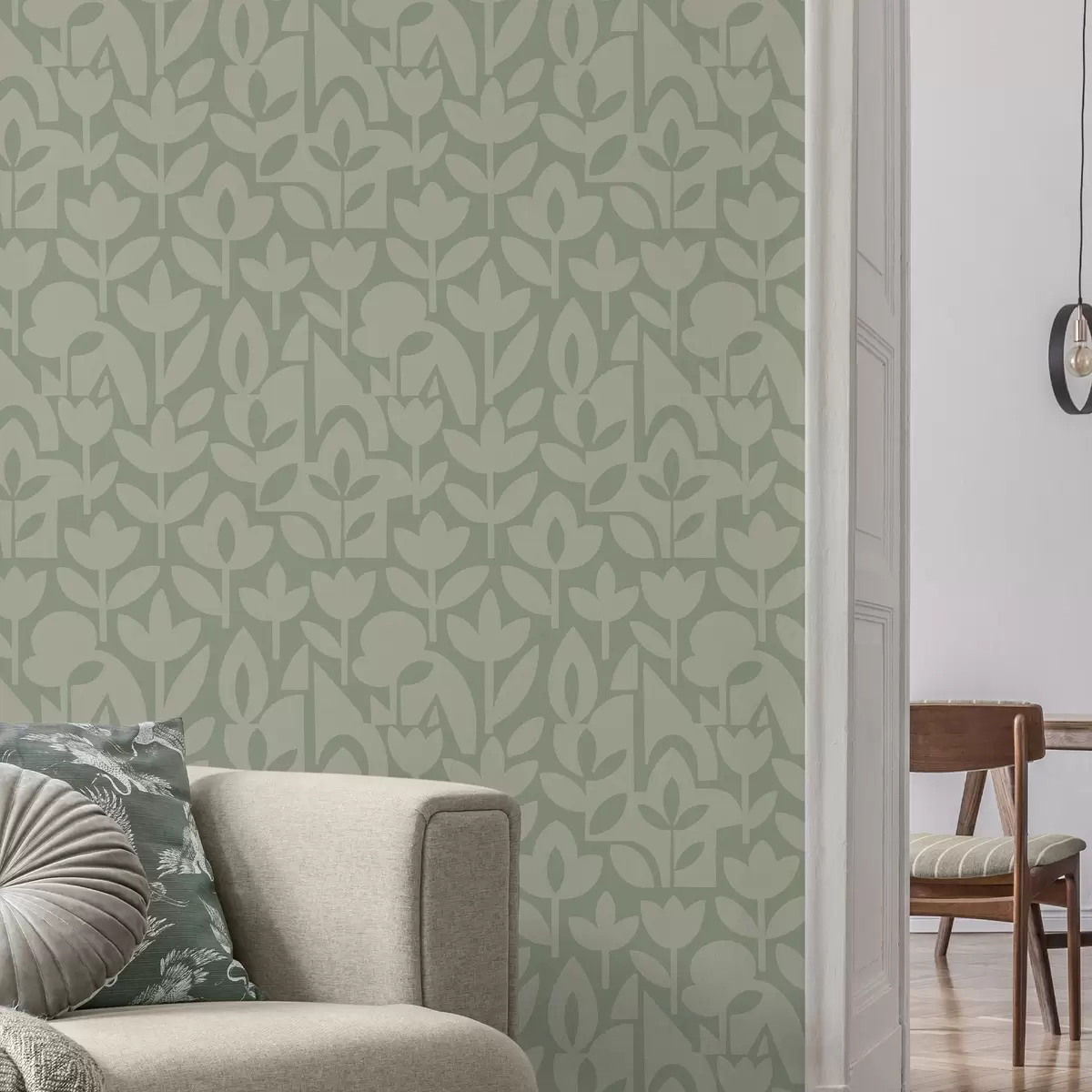 Tapeta Geometrijske cvjetne siluete u nježnoj kadulji br. a00875v1