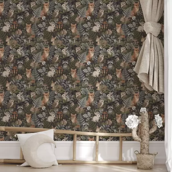 Tapeta Šumske životinje i paprati na dubokom ugljenu br. a00880