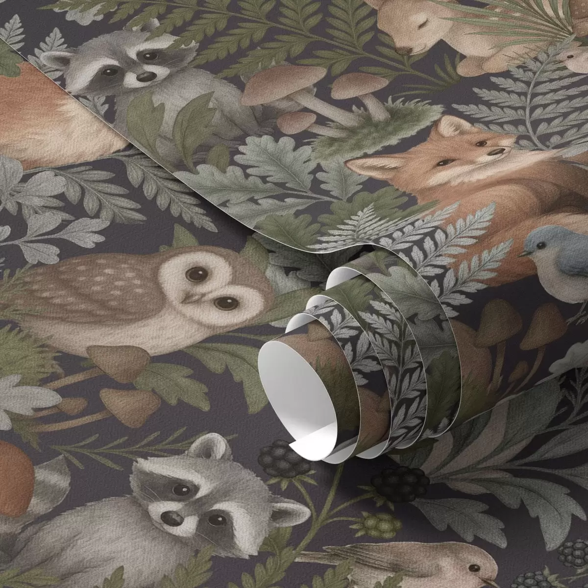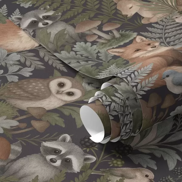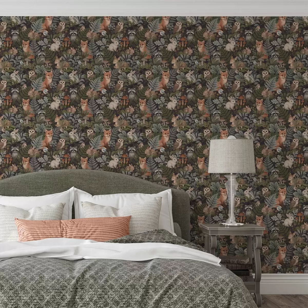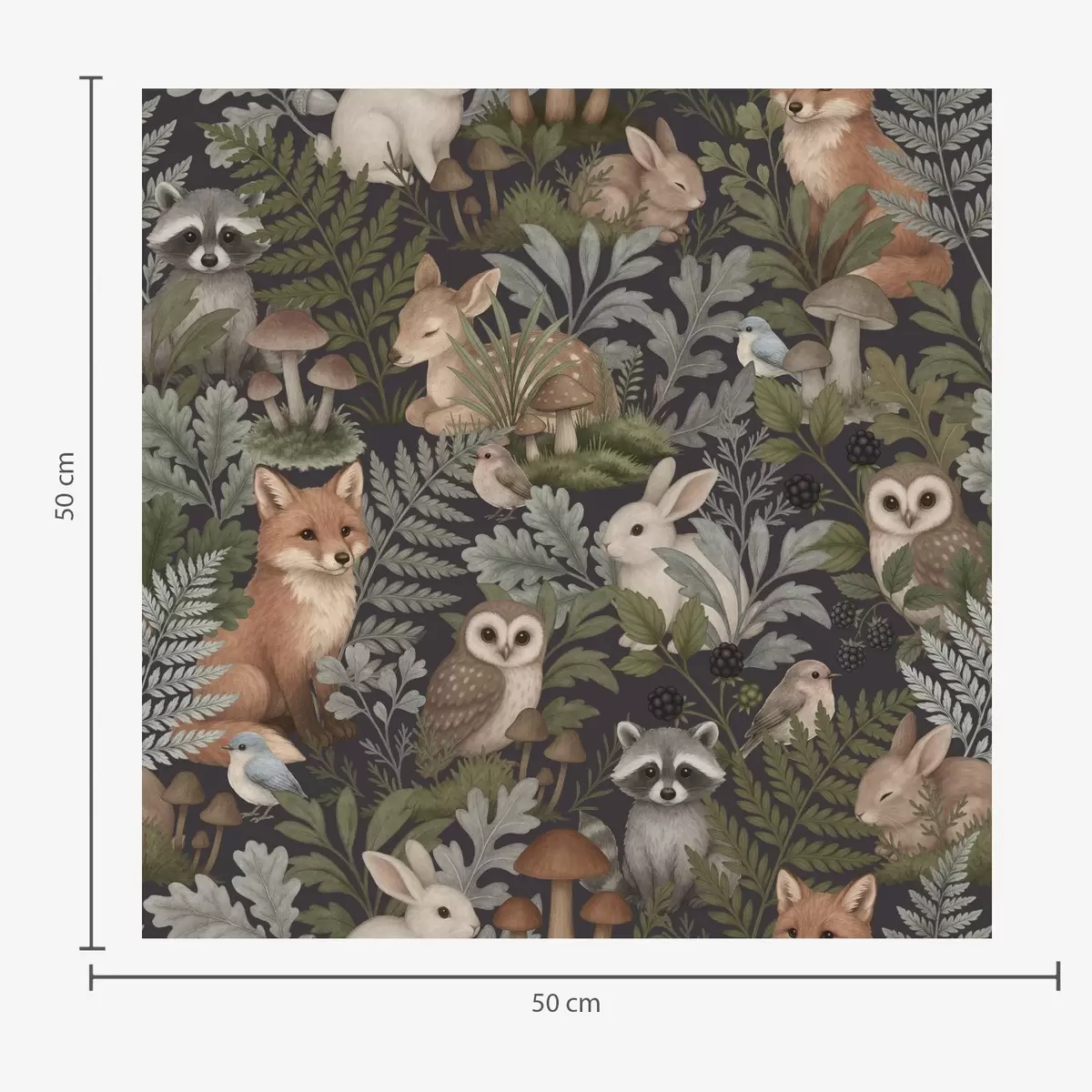 Tapeta Šumske životinje i paprati na dubokom ugljenu br. a00880