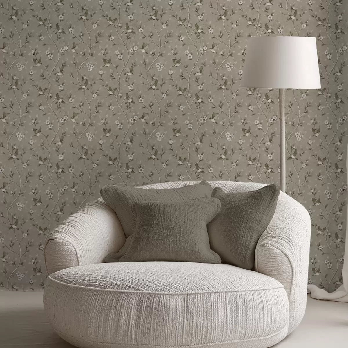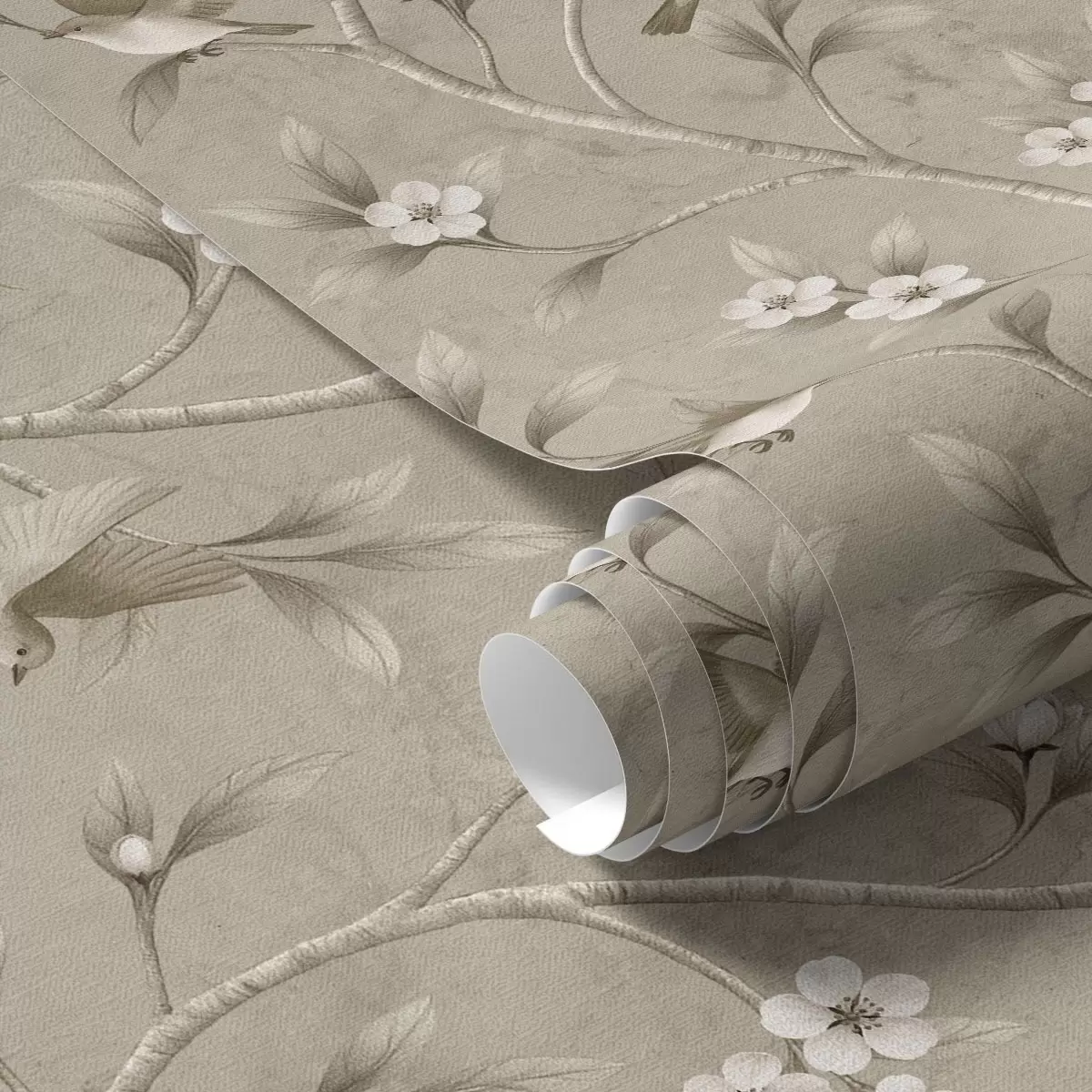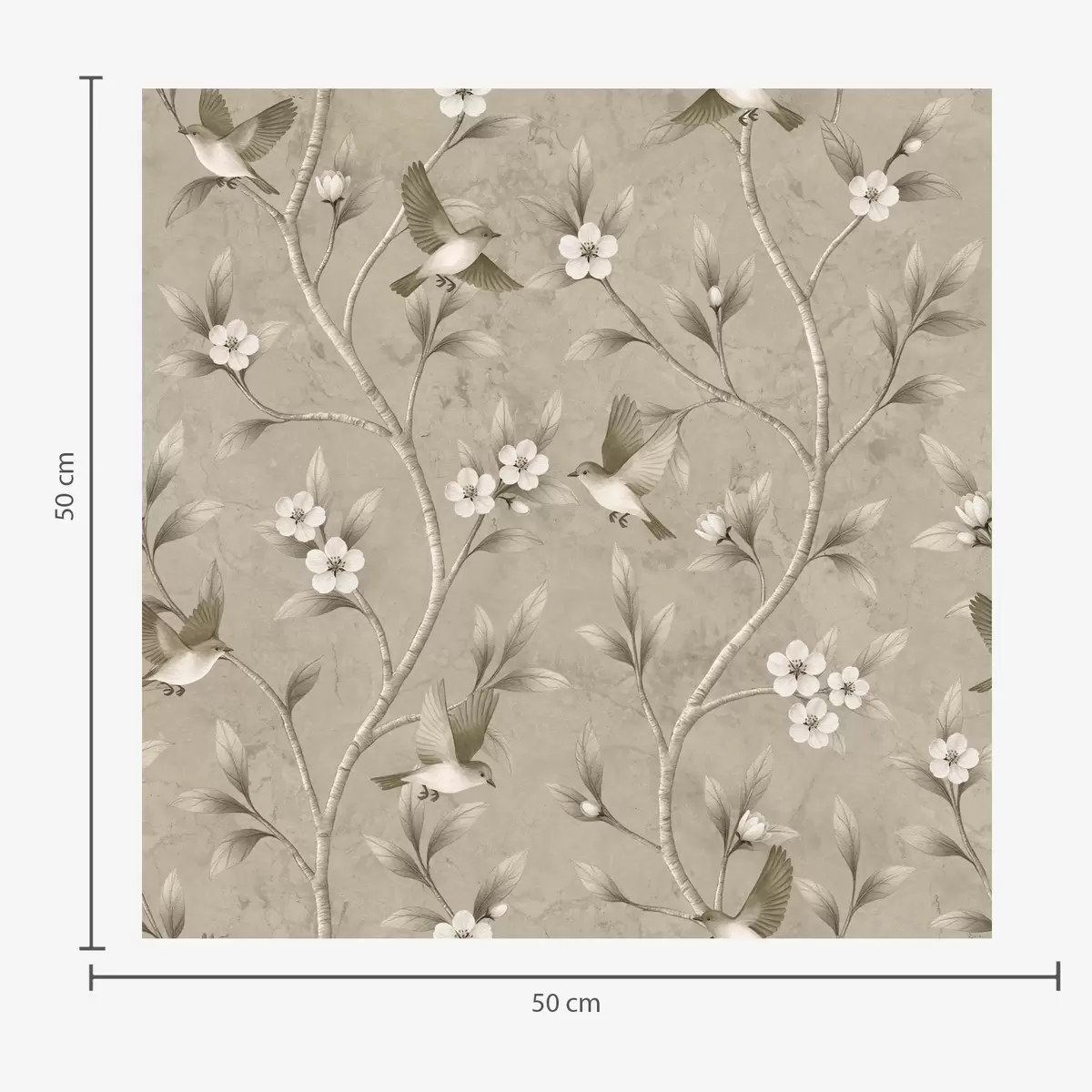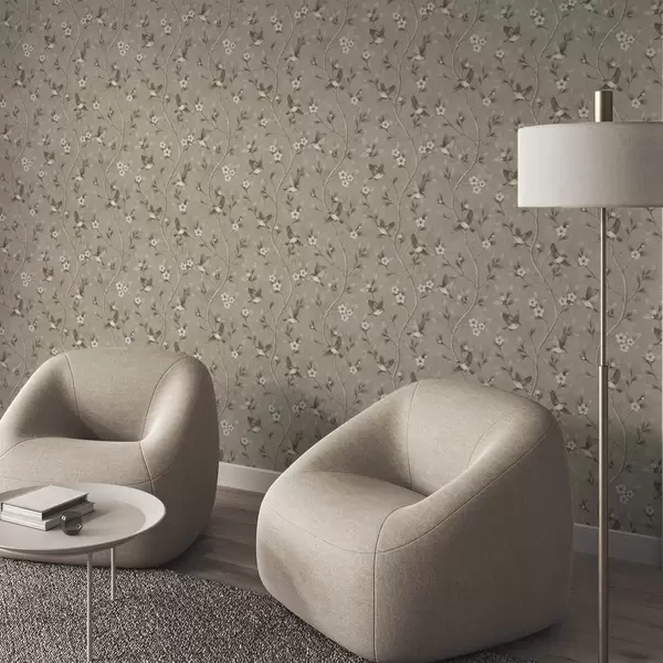 Tapeta Ptice i cvjetajuće grane u toplim sepija tonovima br. a00882