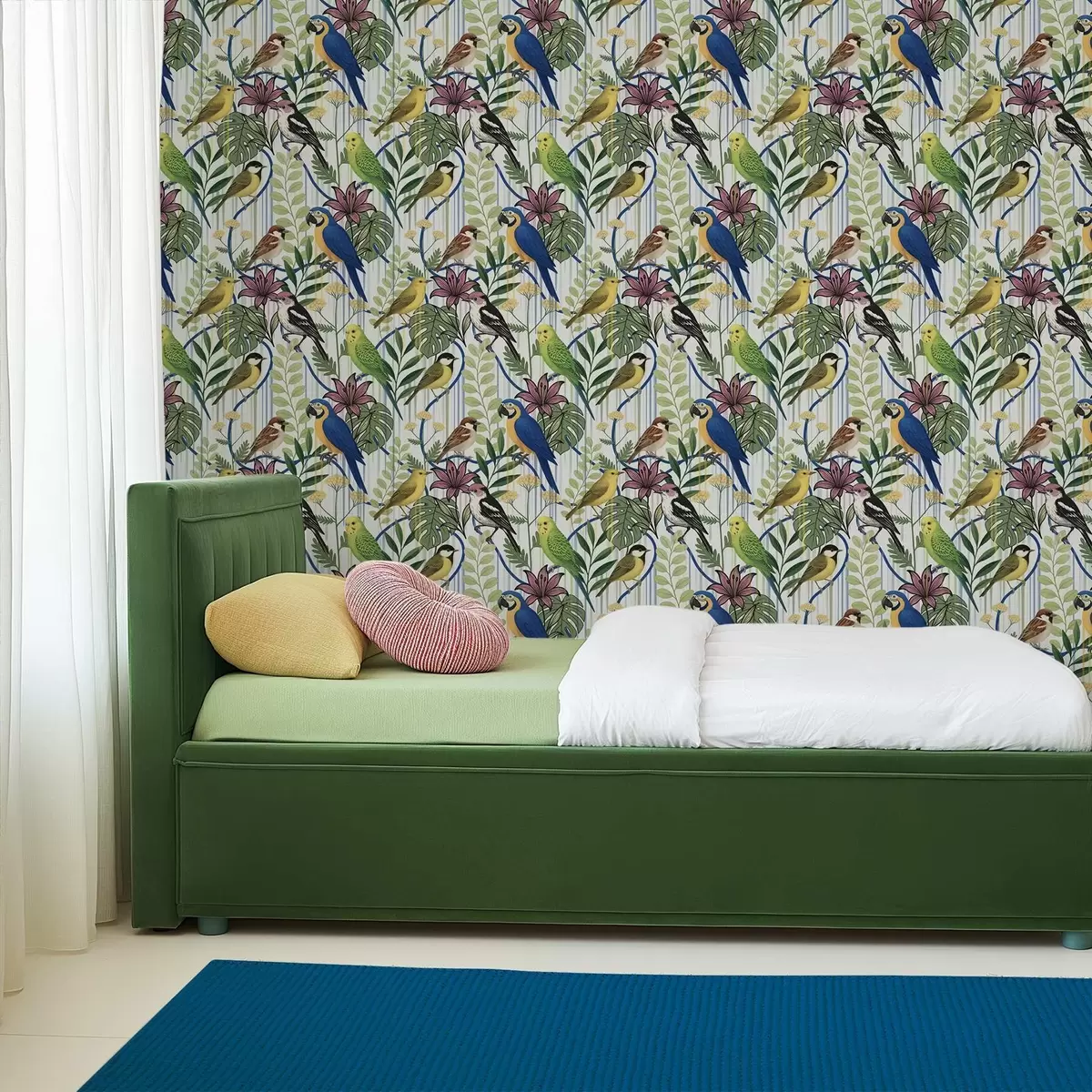 Tapeta Svijetle egzotične ptice među tropskim zelenilom br. a00887