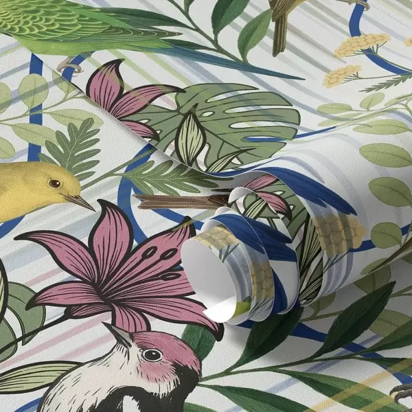 Tapeta Svijetle egzotične ptice među tropskim zelenilom br. a00887