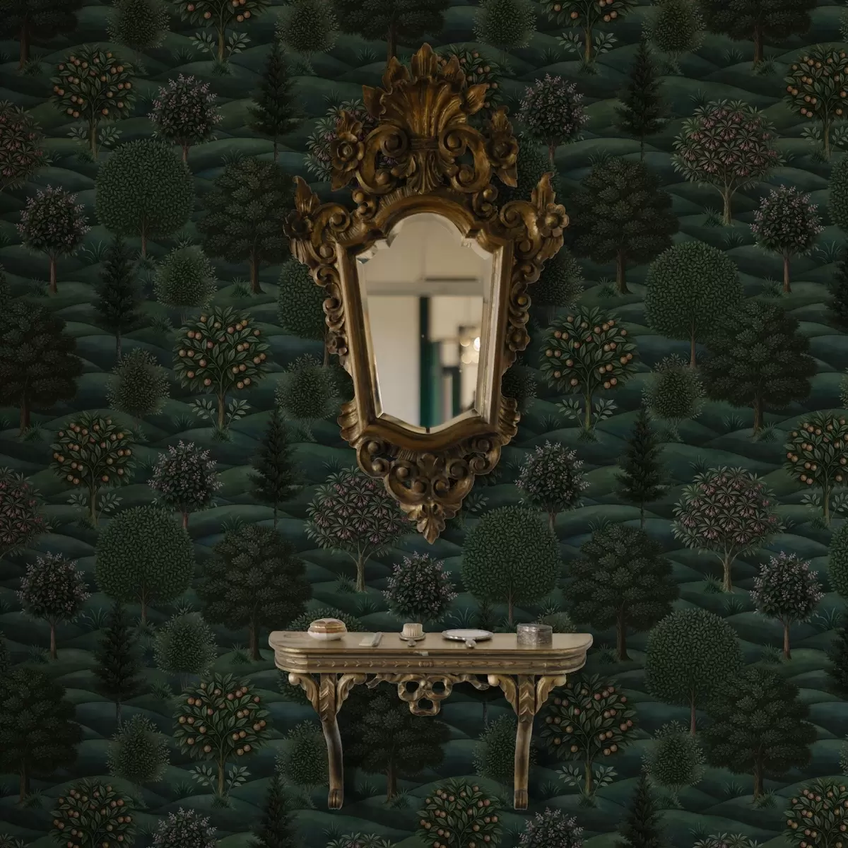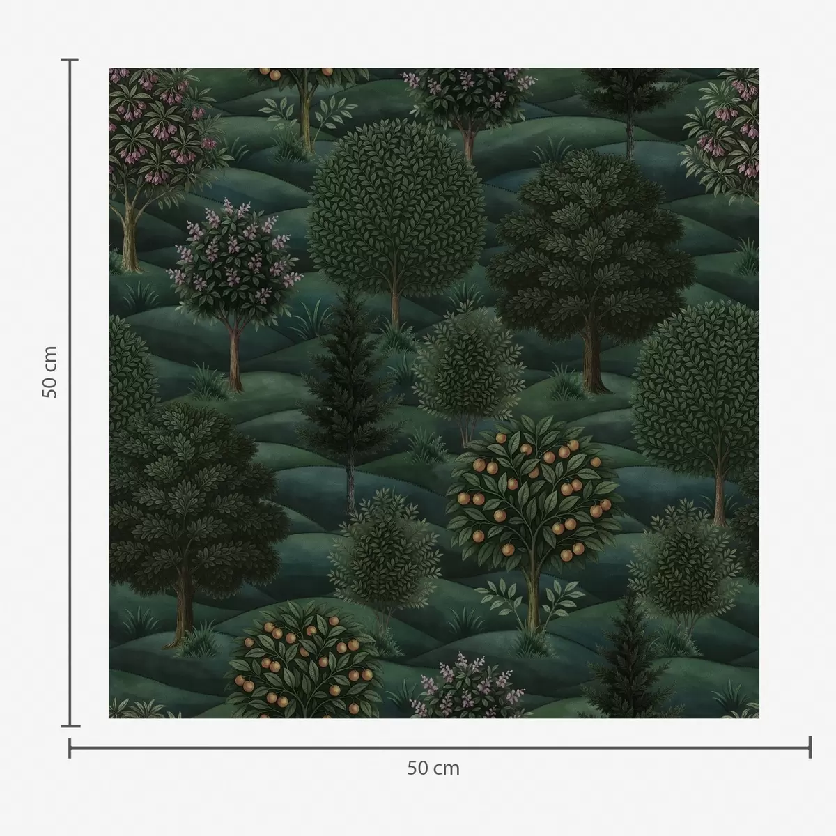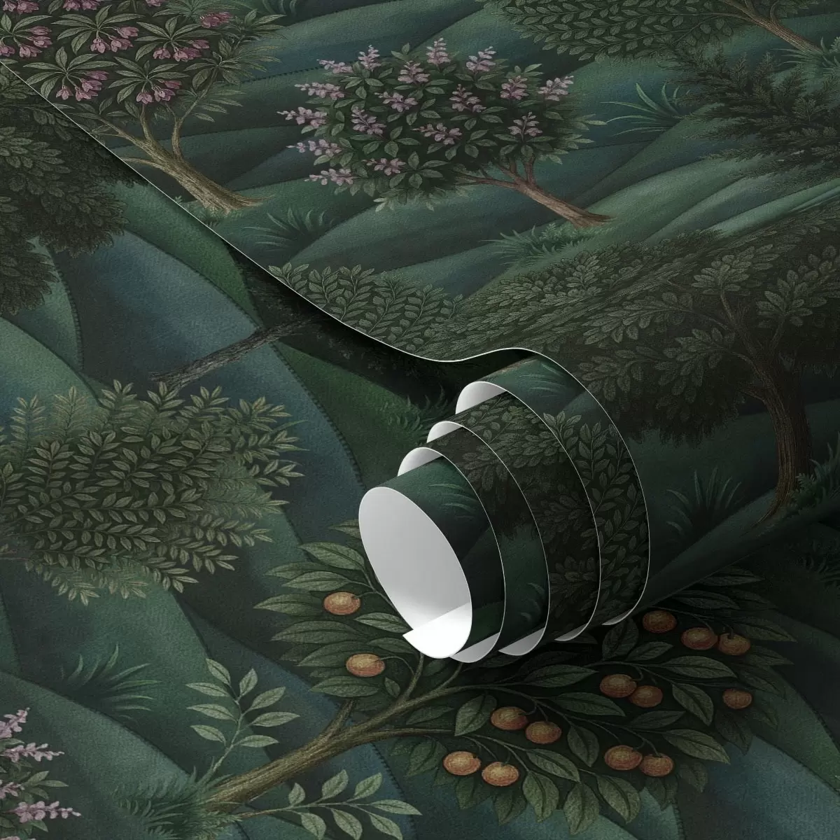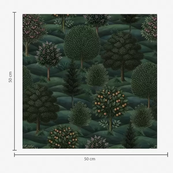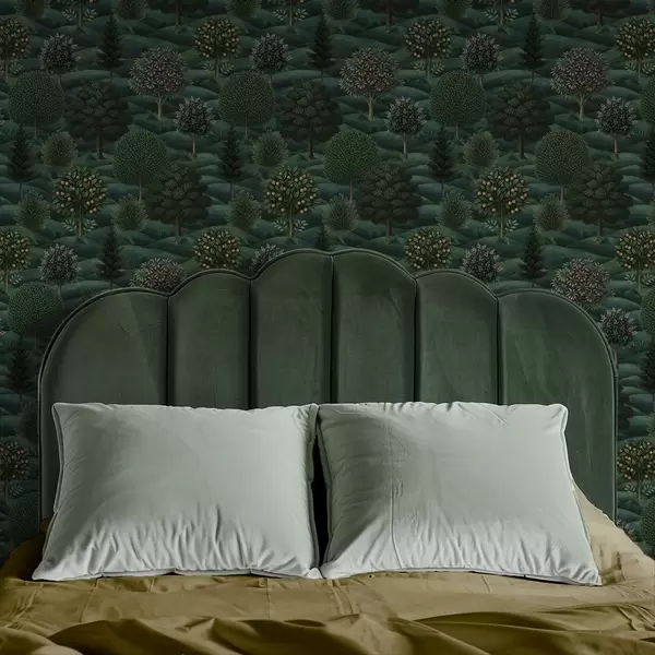 Tapeta Bogati zeleni valoviti krajolik s uzorkovanim drvećem br. a00892