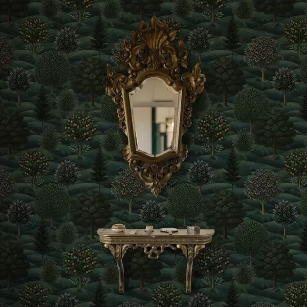 Tapeta Bogati zeleni valoviti krajolik s uzorkovanim drvećem br. a00892