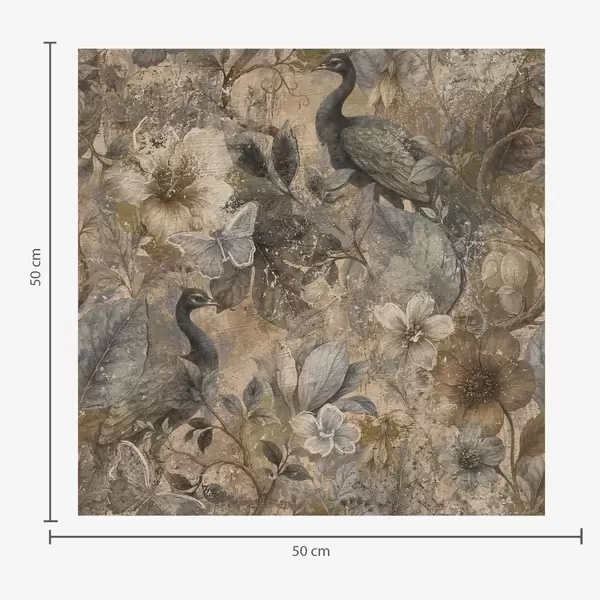 Tapeta Kolaž od starih cvjetova s paunovima i leptirima br. a00897