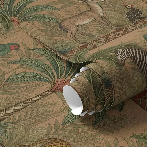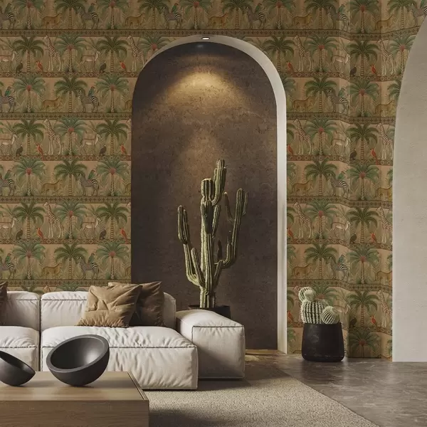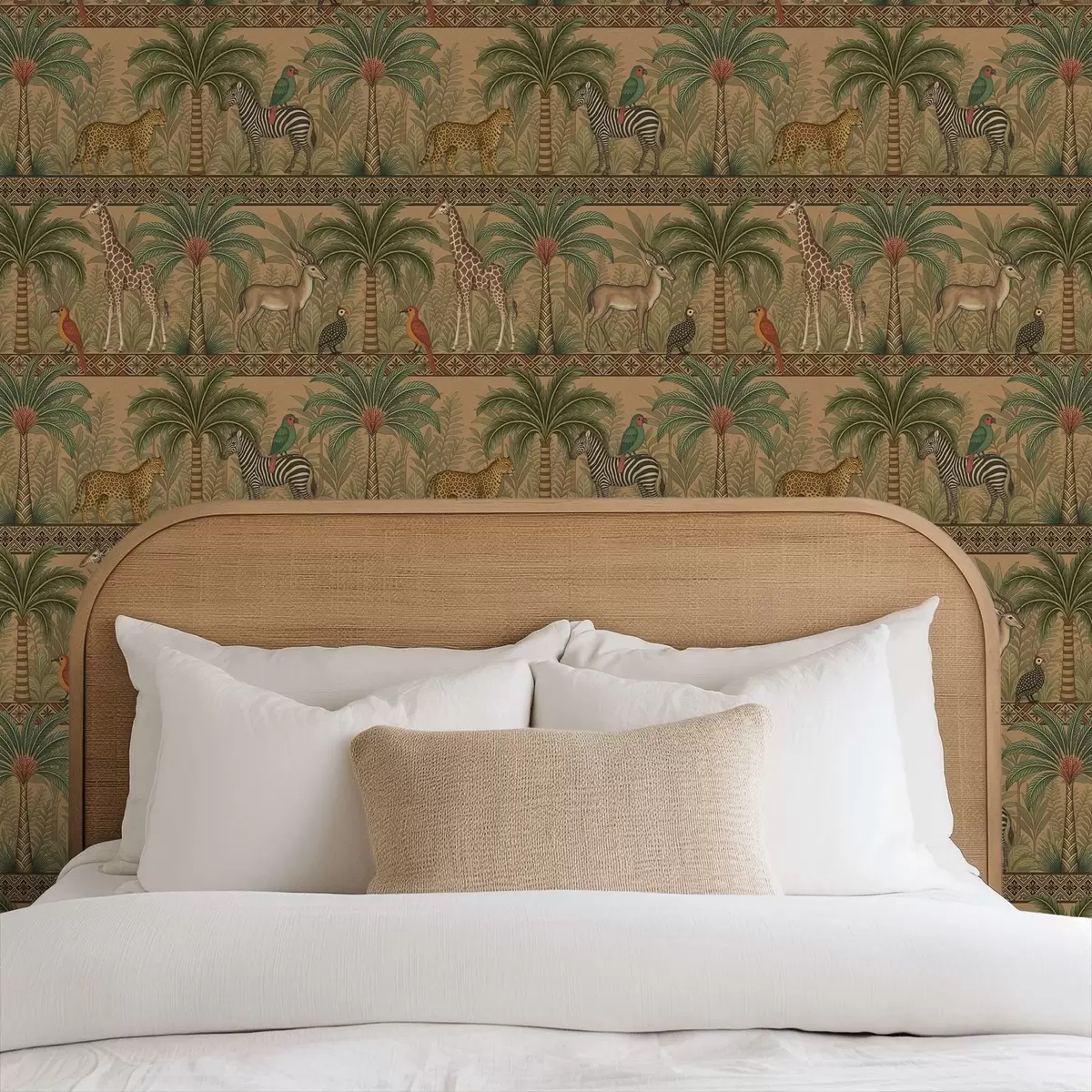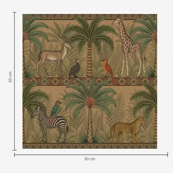 Tapeta Dekorativne životinje savane između palmi i obruba br. a00898