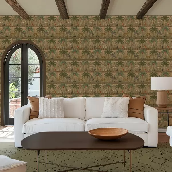 Tapeta Dekorativne životinje savane između palmi i obruba br. a00898
