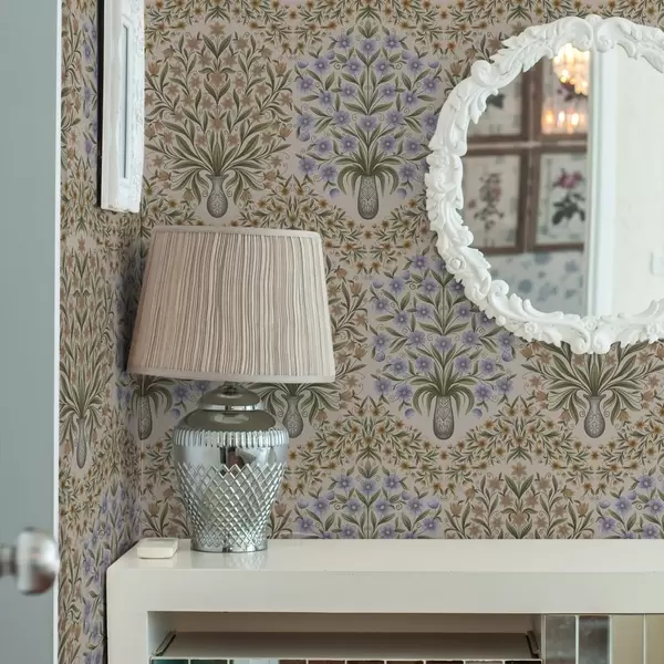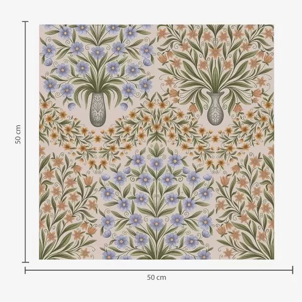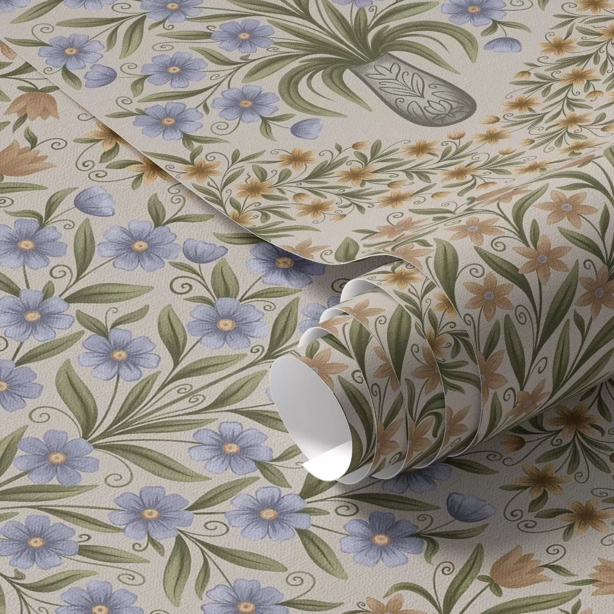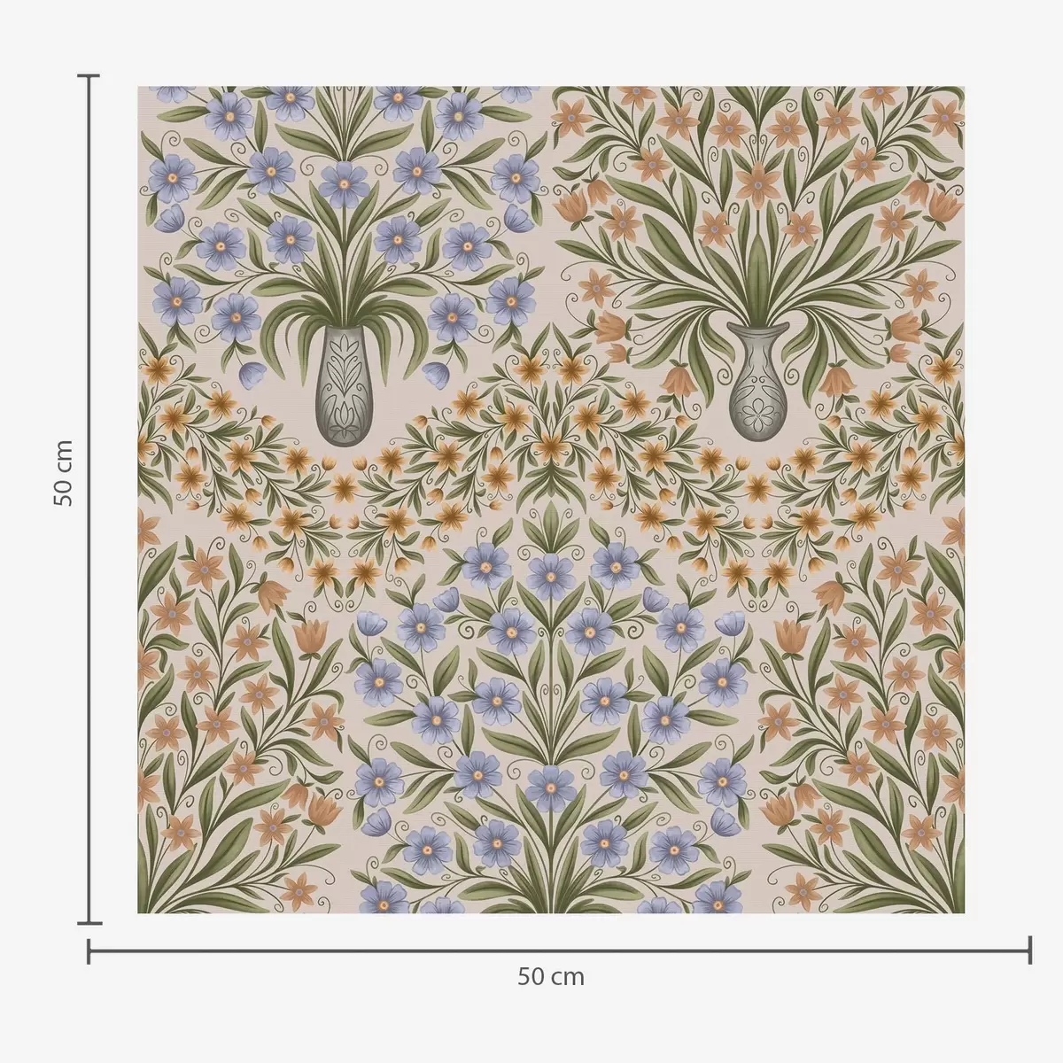 Tapeta Izmjenjujuće vaze i plavi cvjetni aranžmani u boji kadulje na rumenilu br. a00901