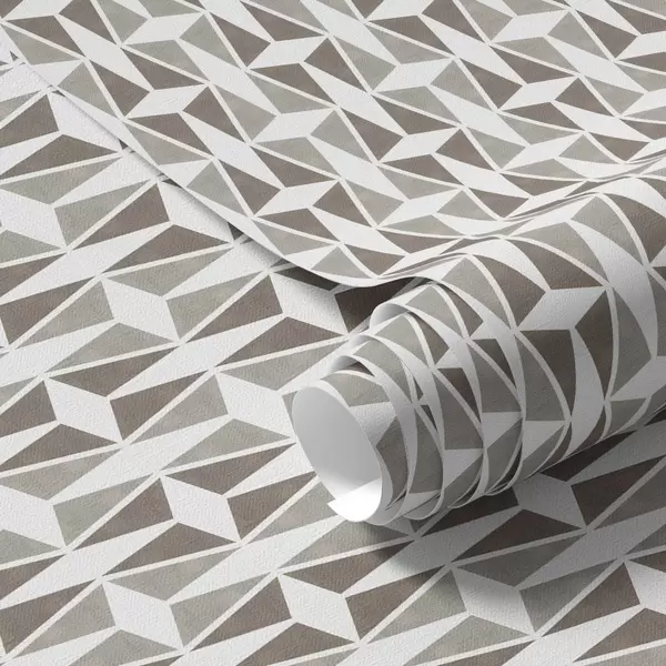 Tapeta Teselacija u taupe i bijelim dijamantima, osjećaj sredine stoljeća br. a00905