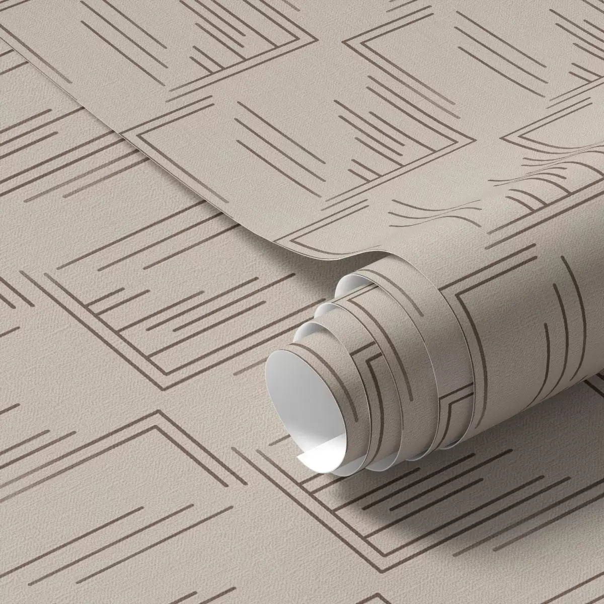 Tapeta Kutni kvadratići boje kakaa na toploj bež podlozi br. a00910