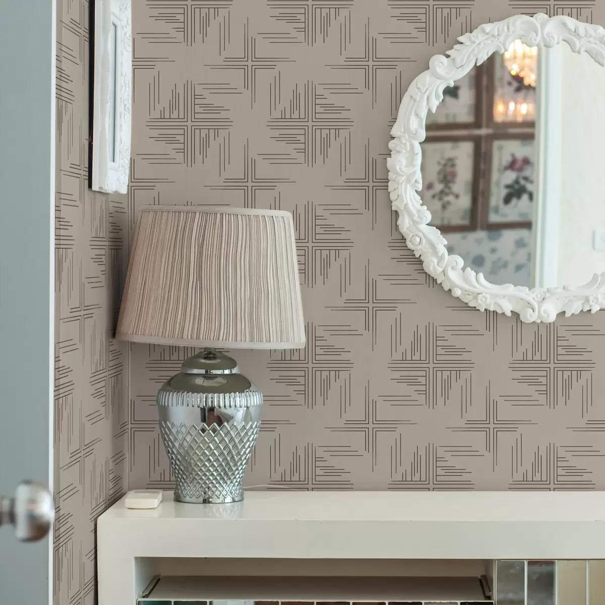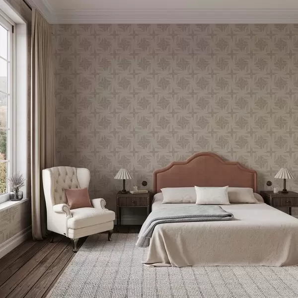 Tapeta Mreže linija boje kakaa s malim središnjim križićima, bež br. a00911