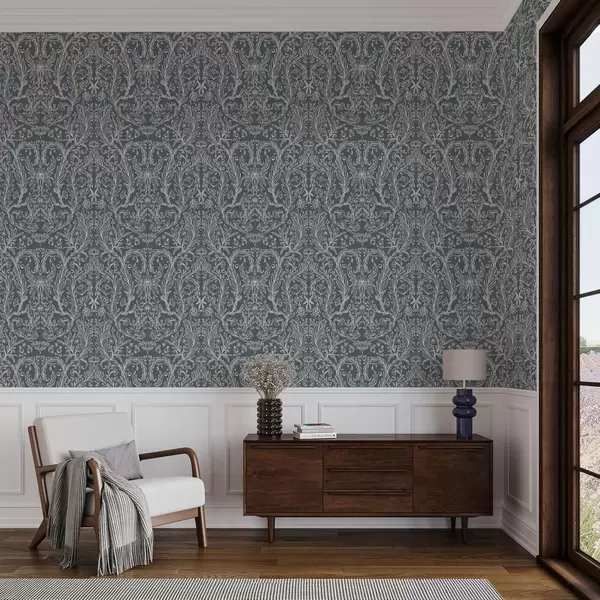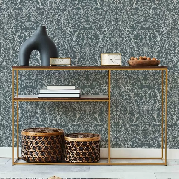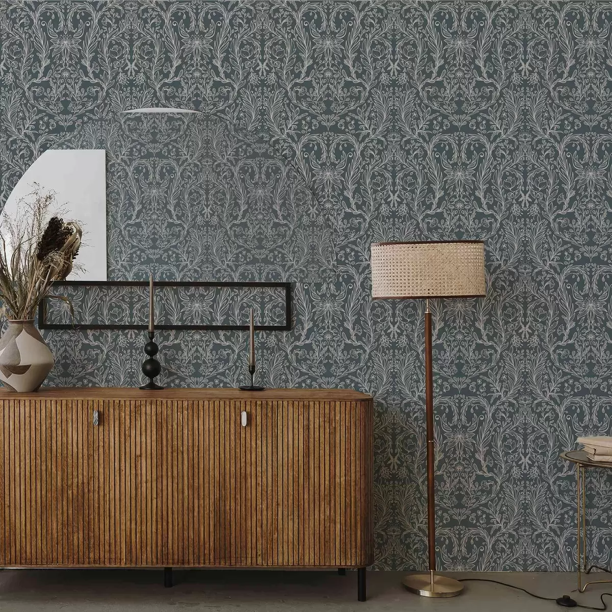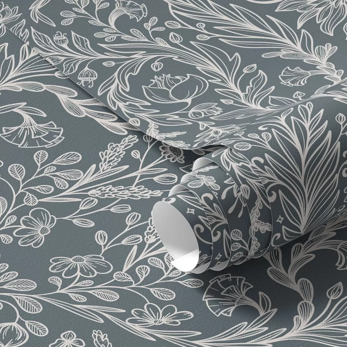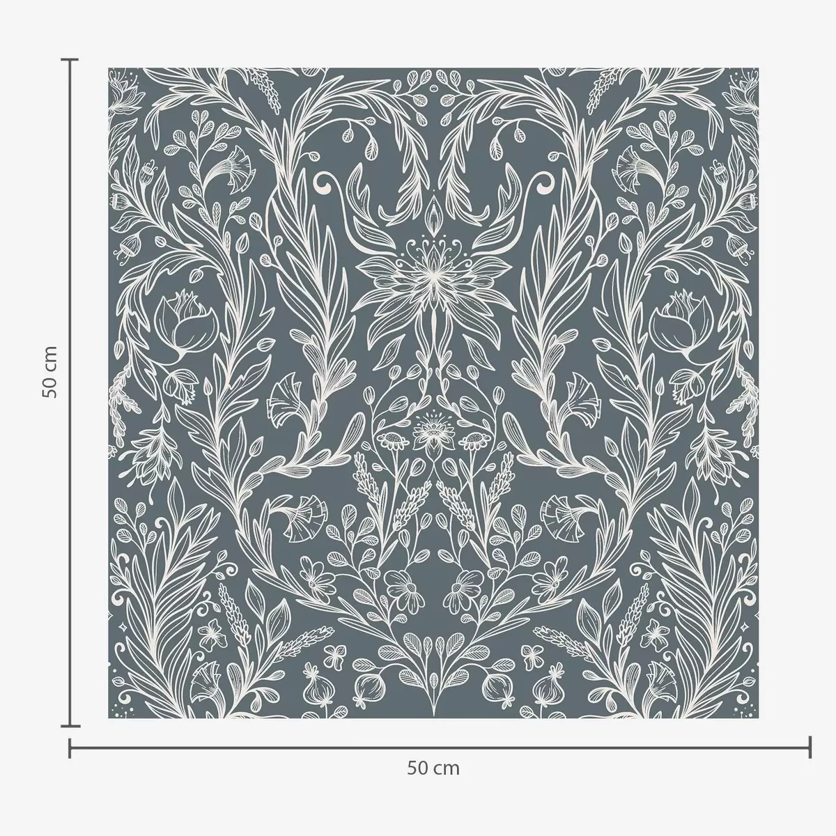 Tapeta Linearni cvjetni ornament na plavkastosivoj pozadini br. a00929v1