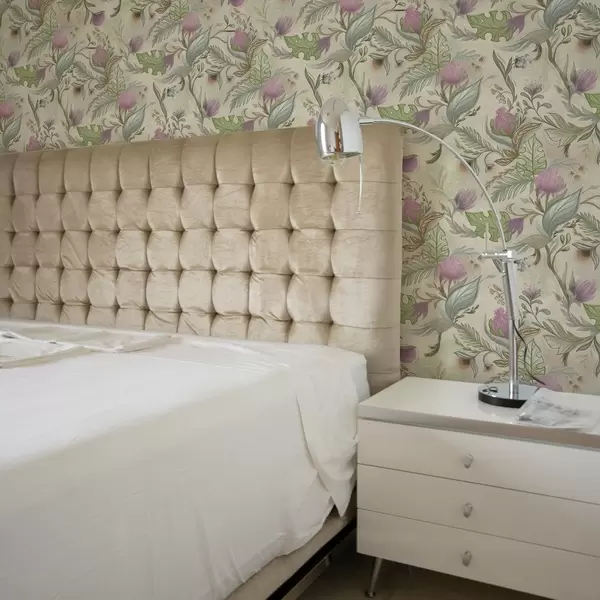 Tapeta Pupoljci jorgovana i meko zelenilo na kremastoj pozadini br. a00930v2