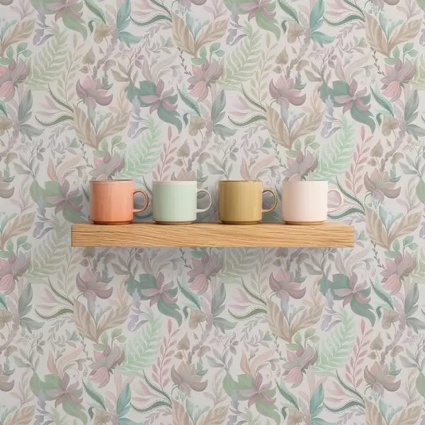 Tapeta Nježno pastelno cvijeće i lišće na svijetloj pozadini br. a00931