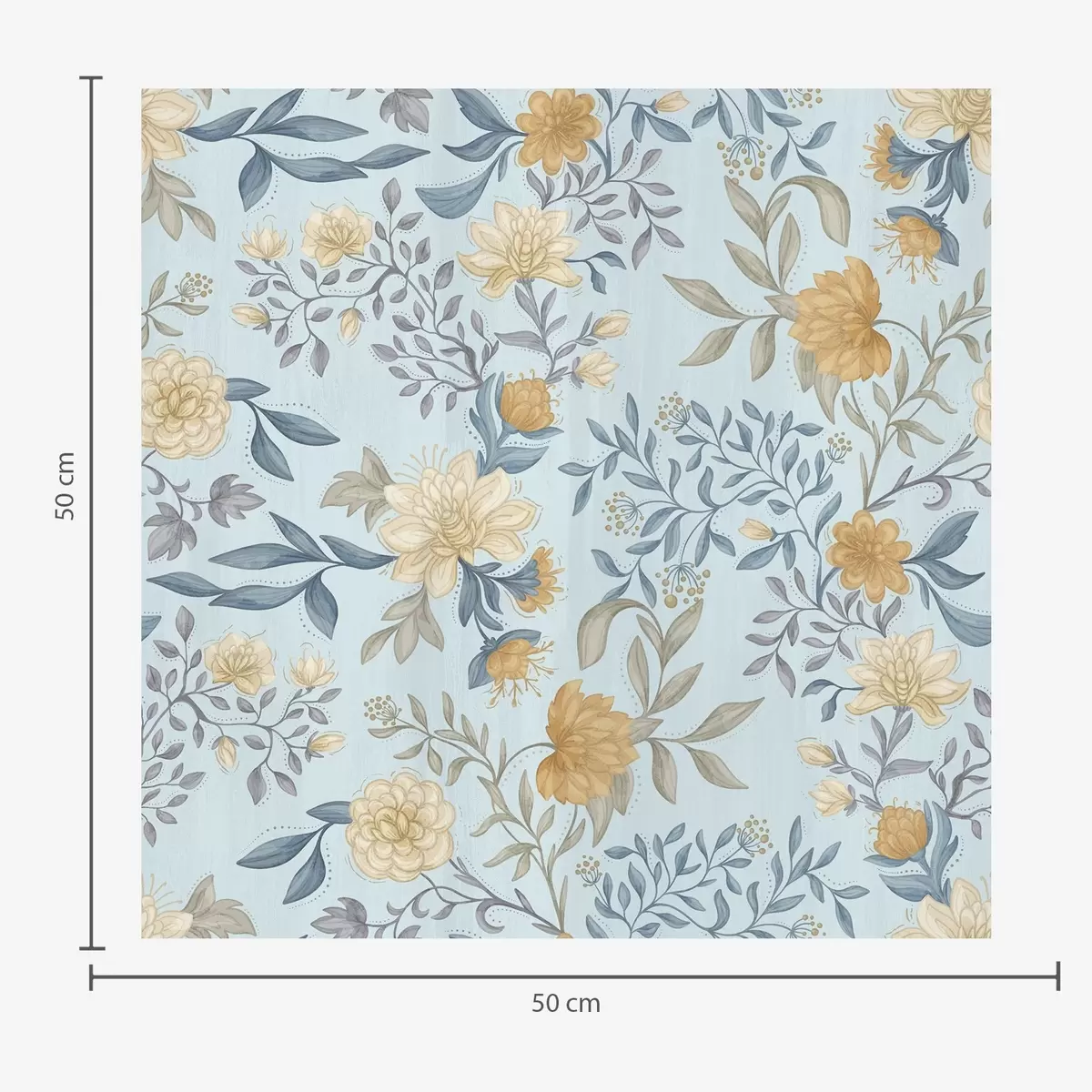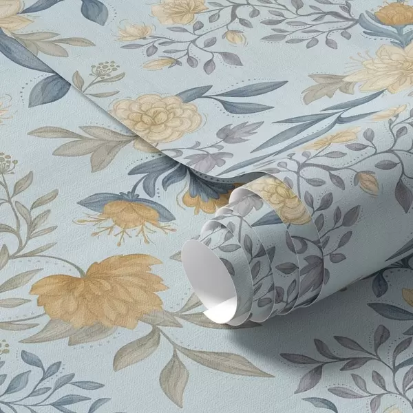 Tapeta Žuto i plavo cvijeće s lišćem na nebesko plavoj pozadini br. a00934