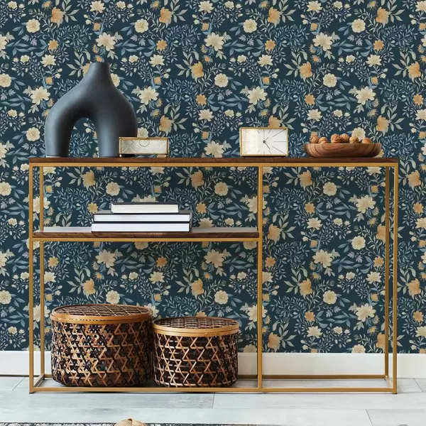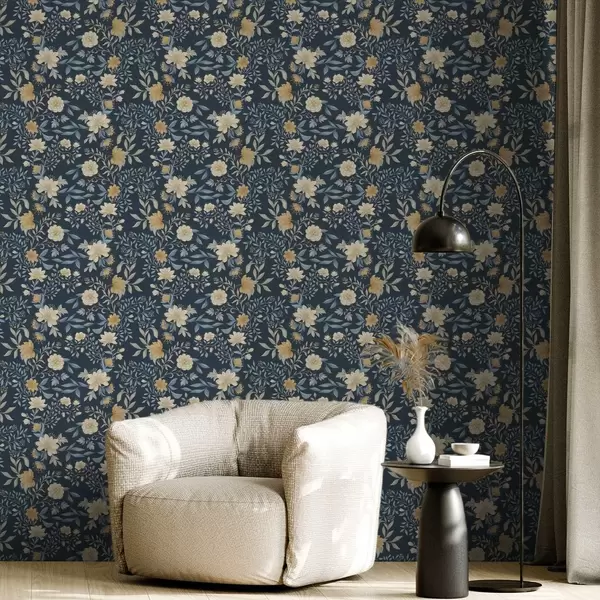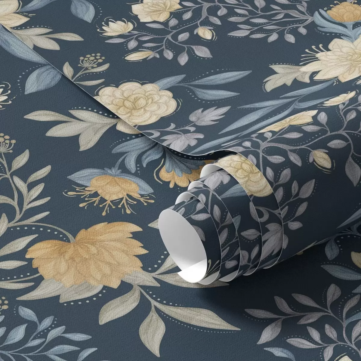 Tapeta Žuto i plavo cvijeće na tamnoplavoj večernjoj pozadini br. a00934v1
