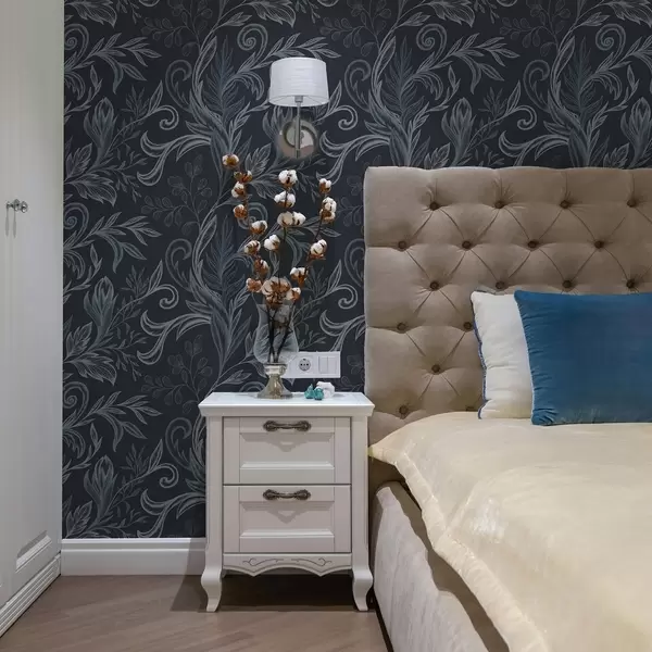 Tapeta Tamno indigo uvijeni listovi s ručno crtanim sjenčanjem br. a00935