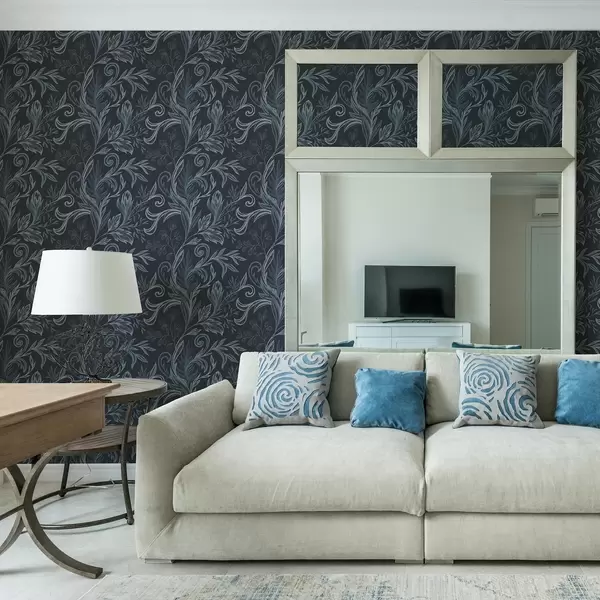 Tapeta Tamno indigo uvijeni listovi s ručno crtanim sjenčanjem br. a00935
