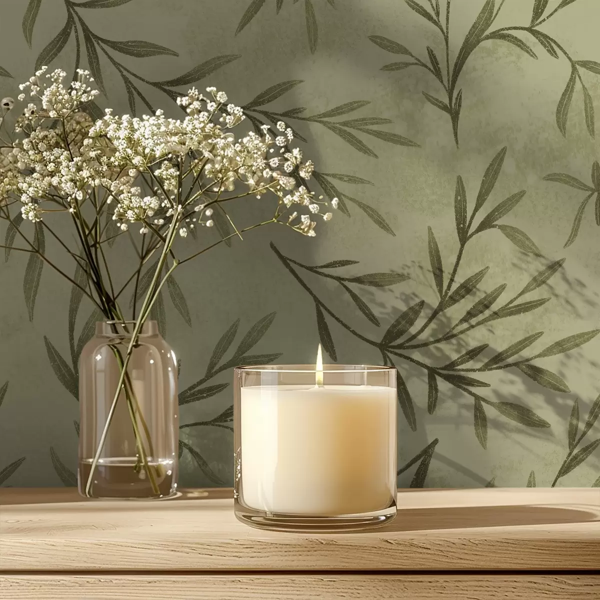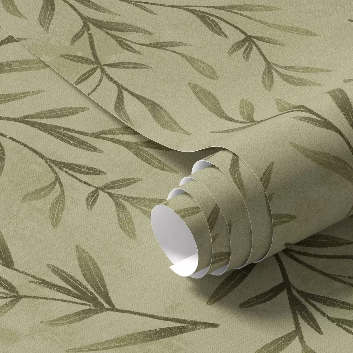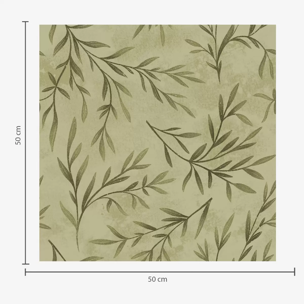 Tapeta Grančice masline na prigušenom žuto-zelenom teksturiranom tlu br. a00936