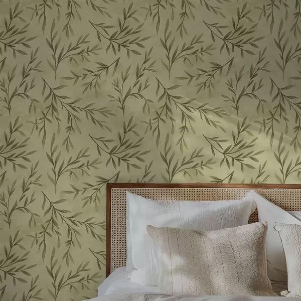 Tapeta Grančice masline na prigušenom žuto-zelenom teksturiranom tlu br. a00936