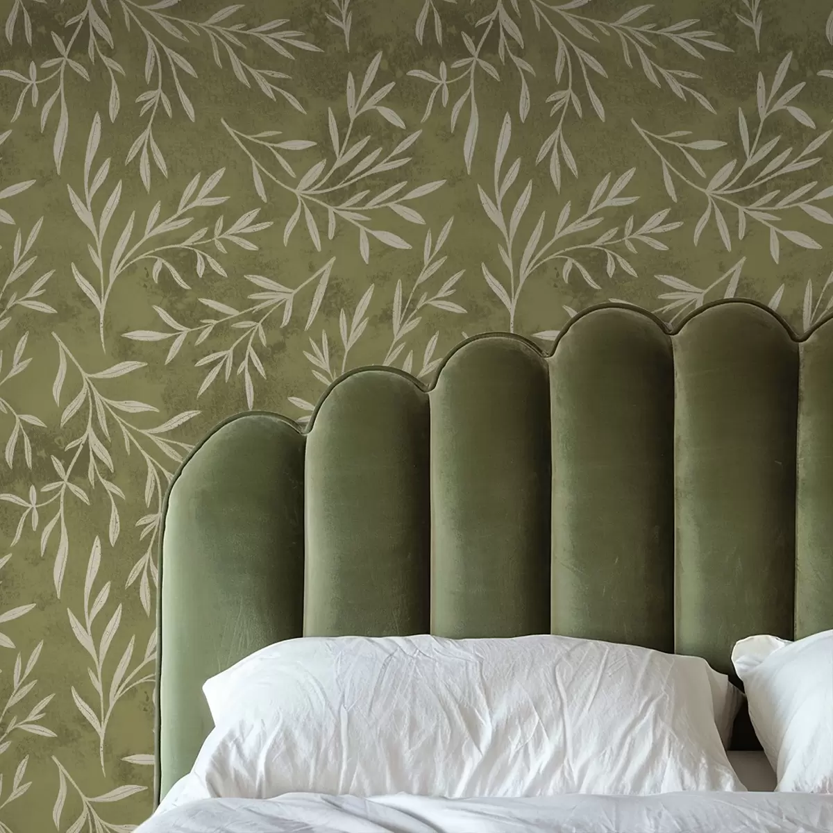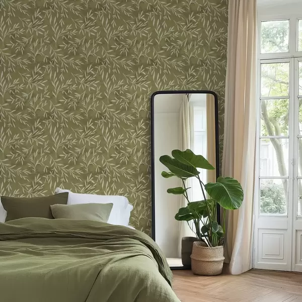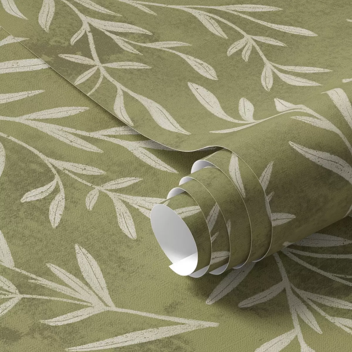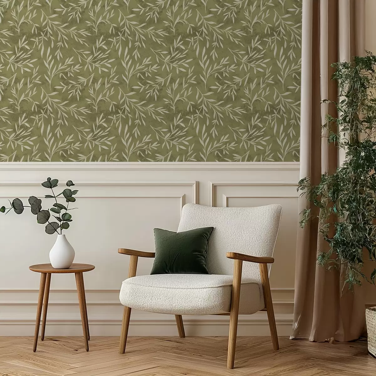 Tapeta Krem-bijele grančice na toploj maslinasto teksturiranoj pozadini br. a00936v1