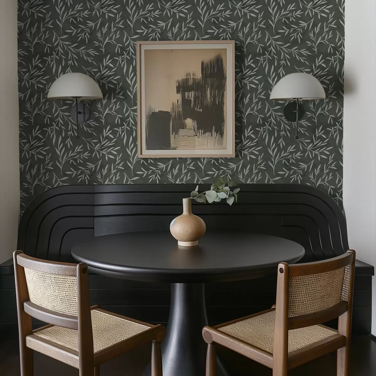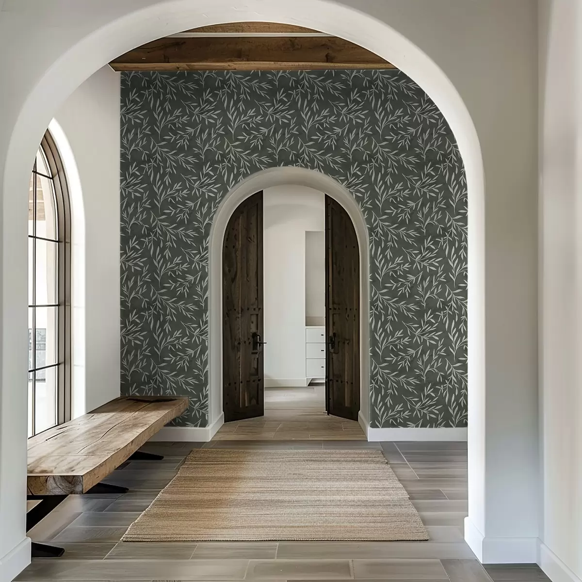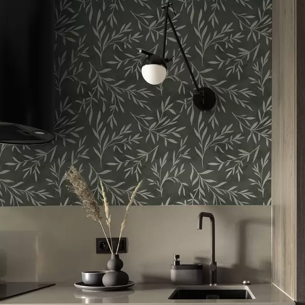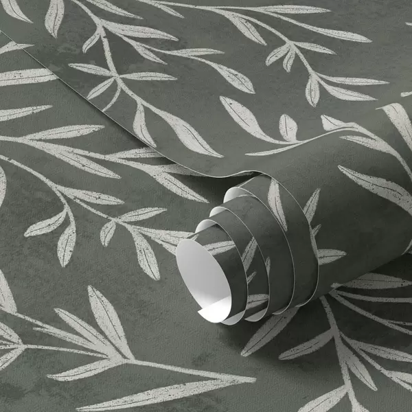 Tapeta Skicirane bijele grane na tamnozelenoj pozadini boje kadulje br. a00936v2