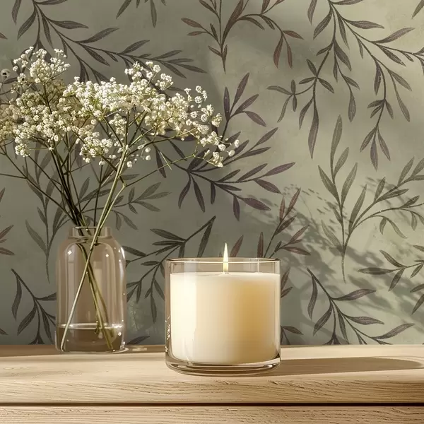 Tapeta Lila i zelene grane s lišćem na toploj pozadini br. a00936v4