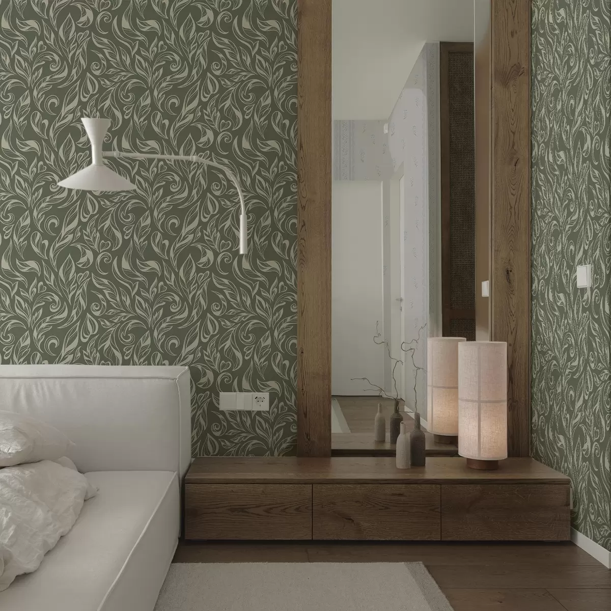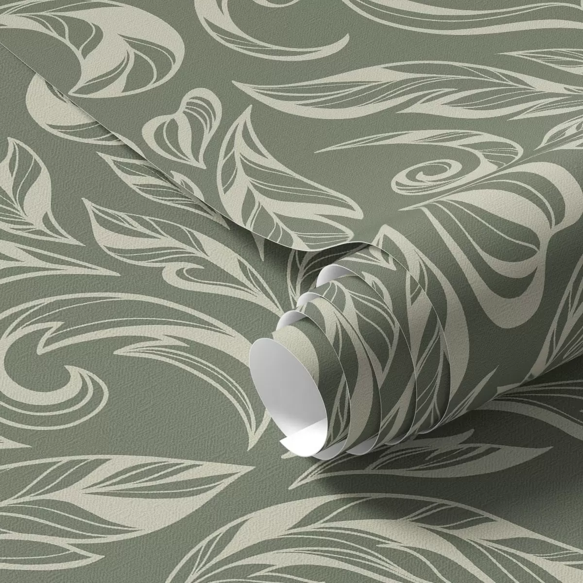Tapeta Krem lisnati ukras na zelenkastosivoj pozadini br. a00940v2