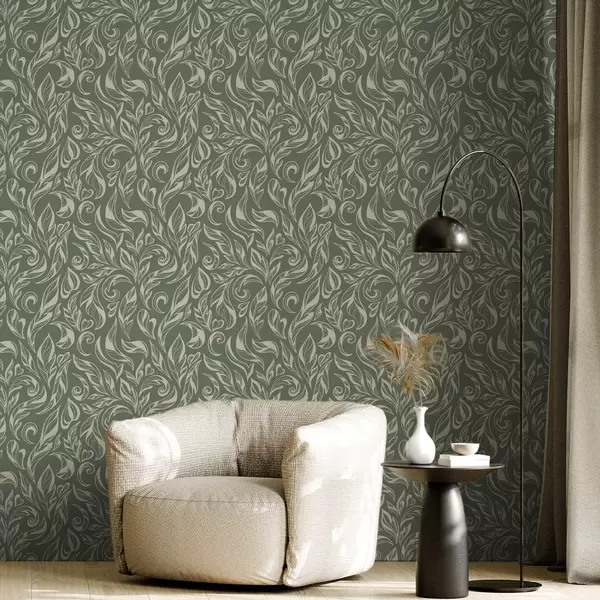 Tapeta Krem lisnati ukras na zelenkastosivoj pozadini br. a00940v2