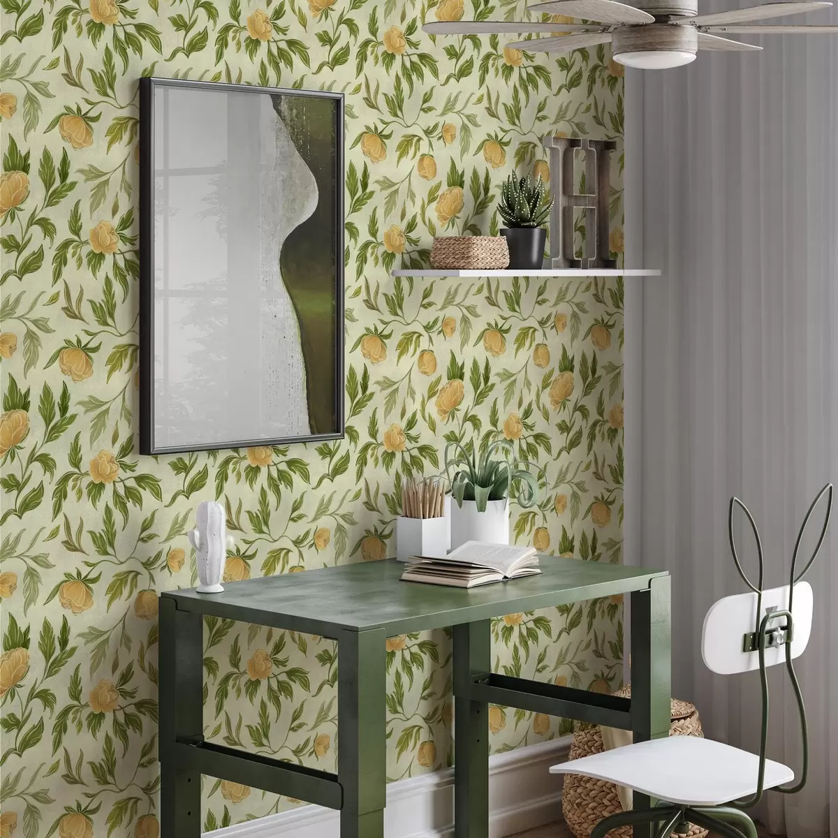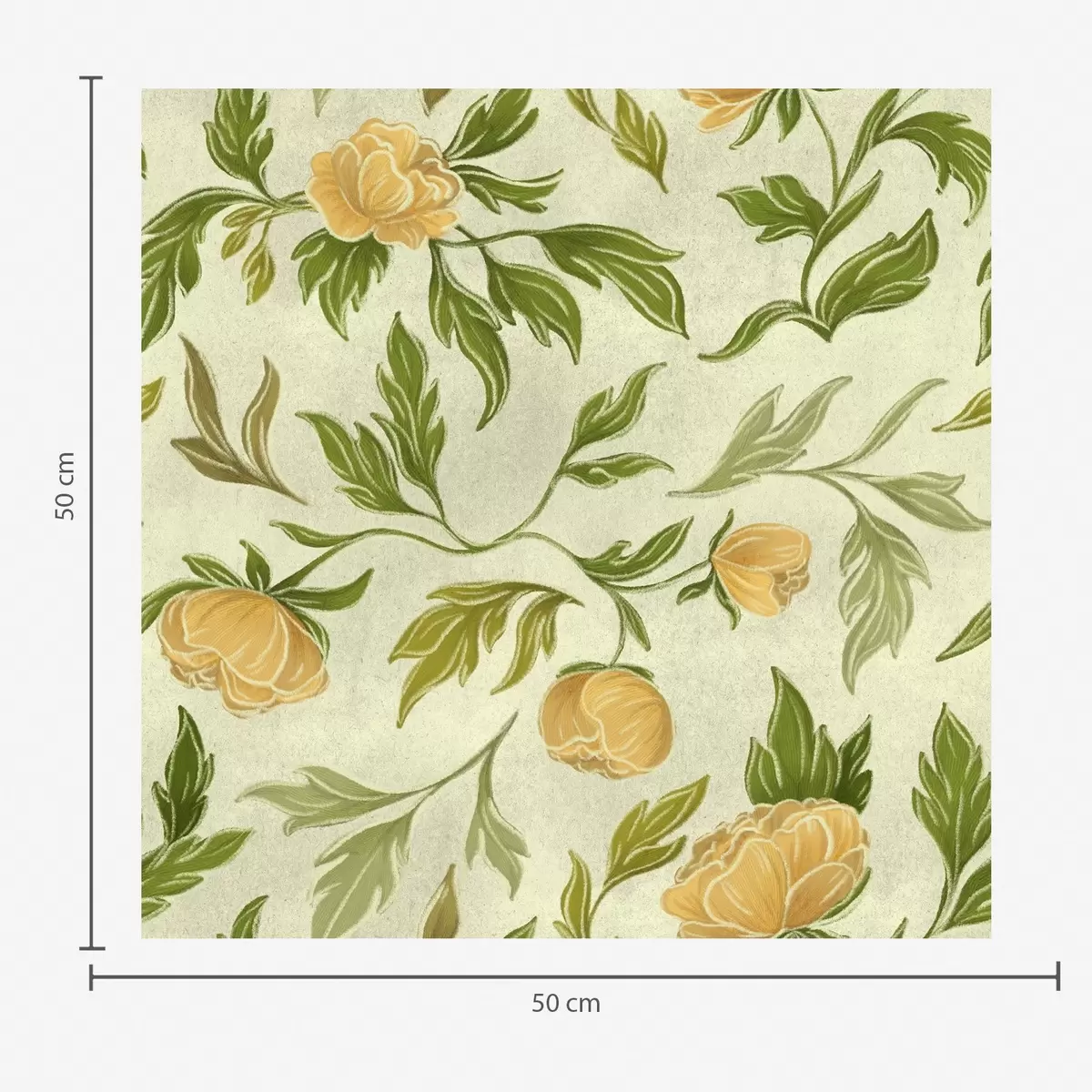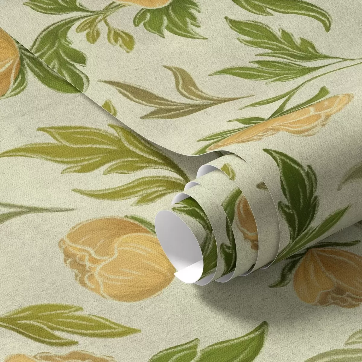 Tapeta Žuti božuri i lišće na mekoj svijetlozelenoj pozadini br. a00942