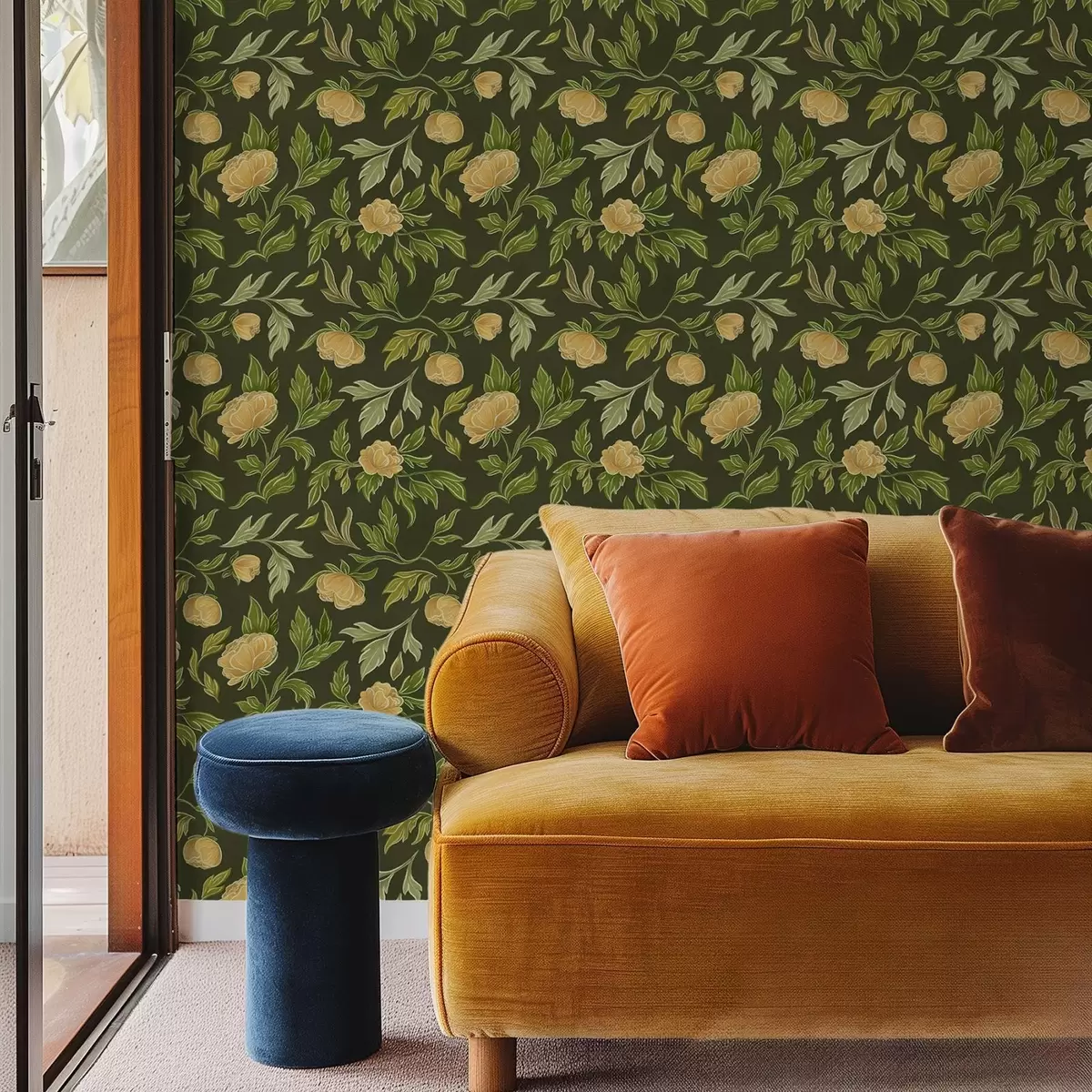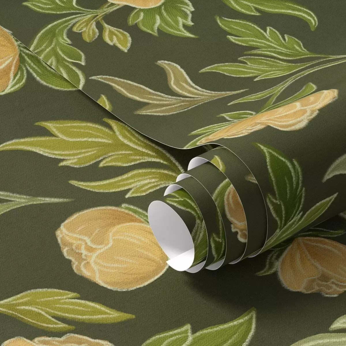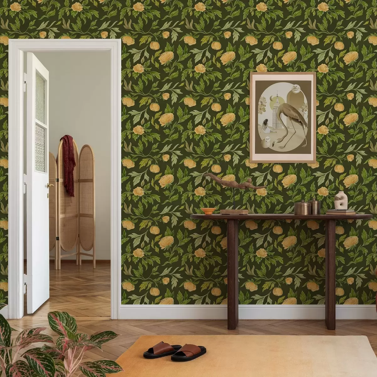 Tapeta Žuti božuri na bogatoj tamnozelenoj pozadini br. a00942v1