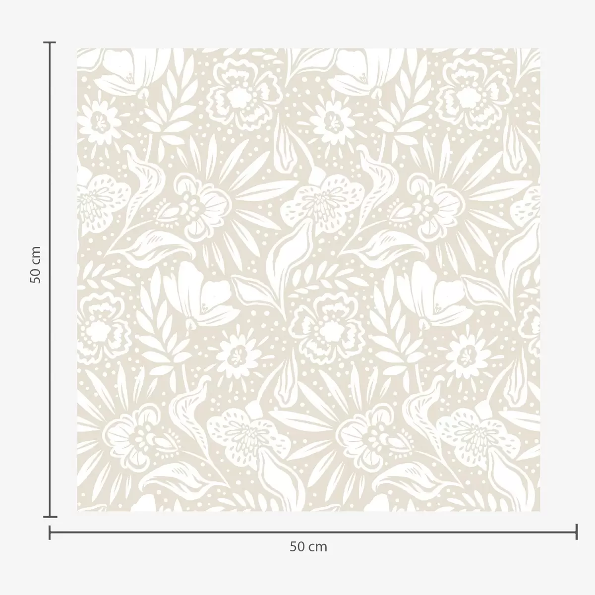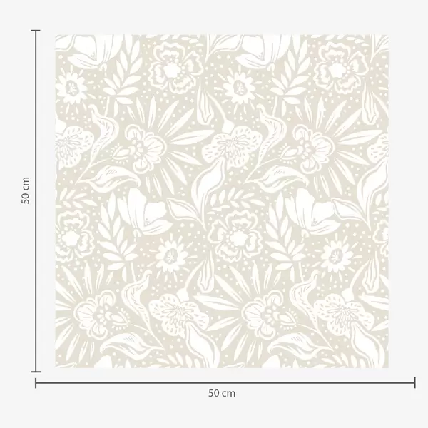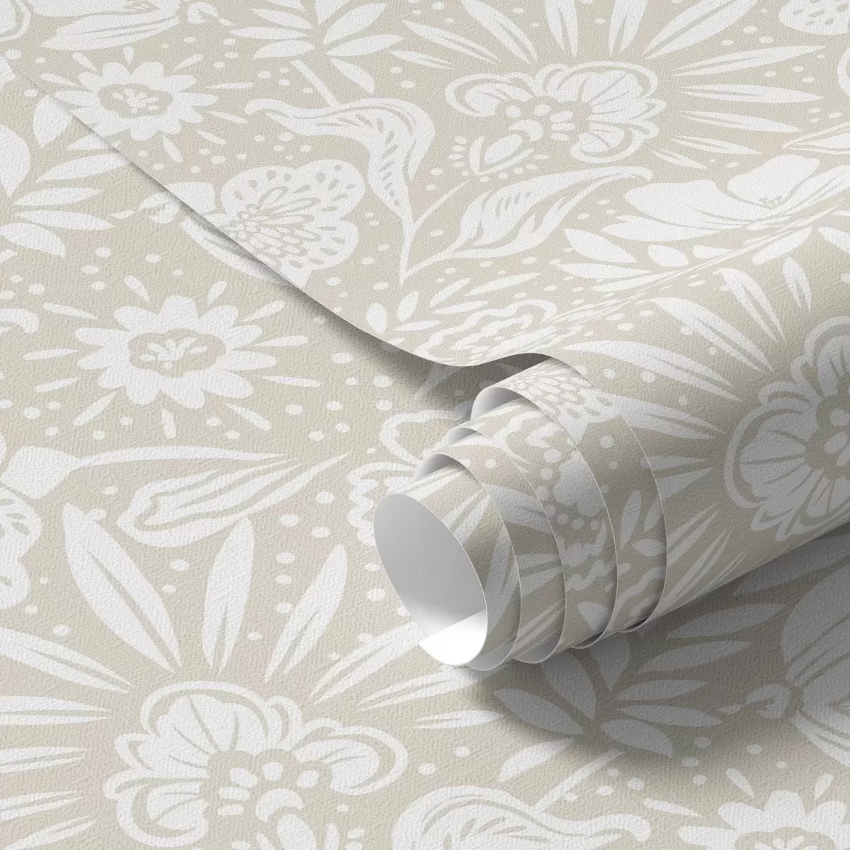 Tapeta Bijeli linearni cvjetni ornament na bež pozadini br. a00956