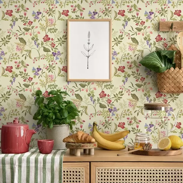 Tapeta Cvjetajući vrt s bobicama, grožđem i divljim cvijećem br. a00961