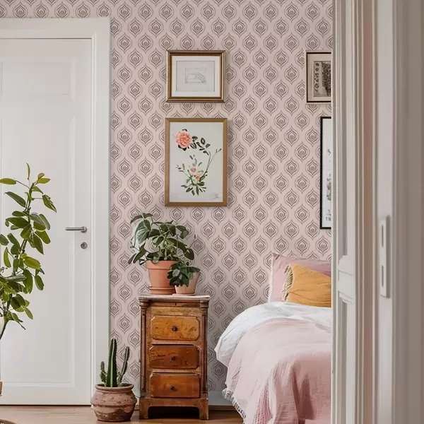 Tapeta Ritmički motiv kapi s cvijetom na puderastoj pozadini br. a00977