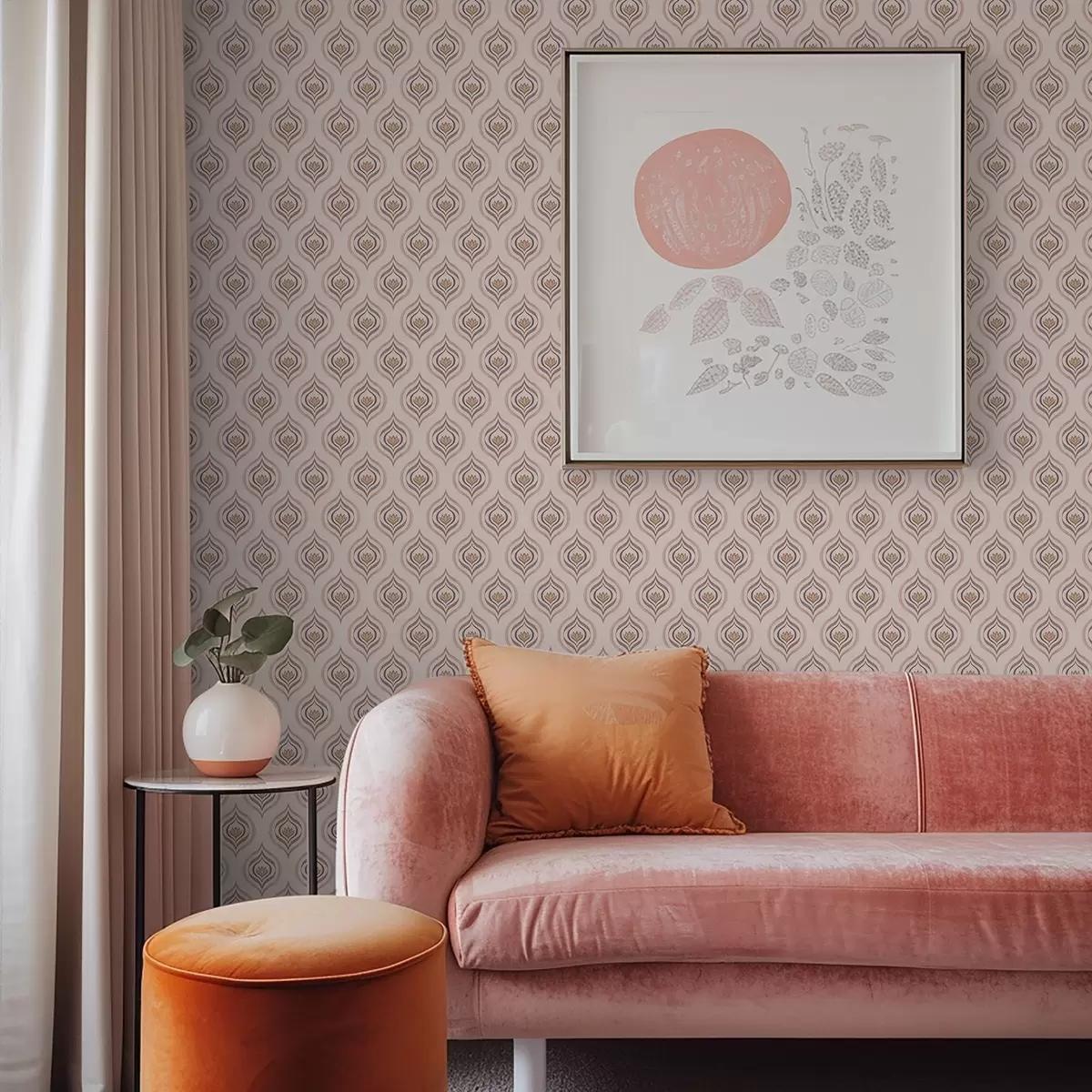 Tapeta Ritmički motiv kapi s cvijetom na puderastoj pozadini br. a00977