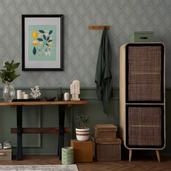 Tapeta Dijagonalni potezi koji tvore kvadrate u mint-sivoj paleti br. a00983v1