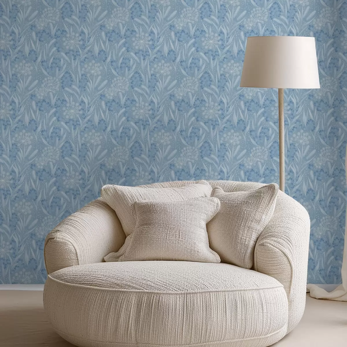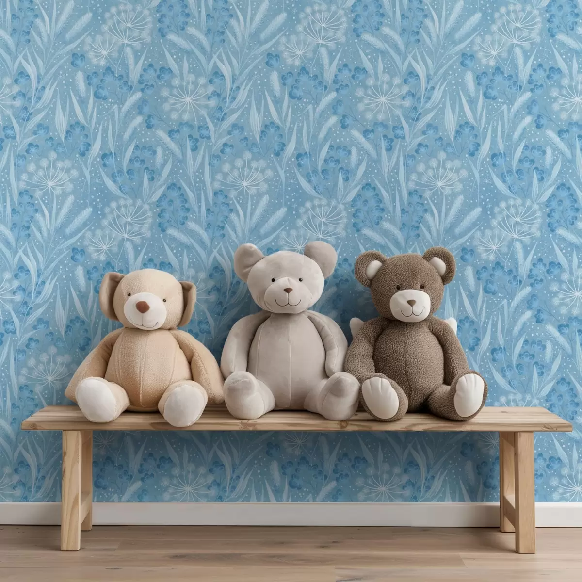 Tapeta Mrazno plava livada sa sjemenkama maslačka i sitnim cvjetovima br. a00995