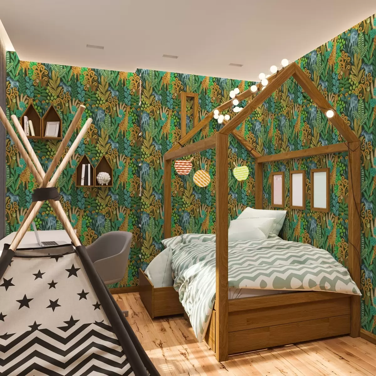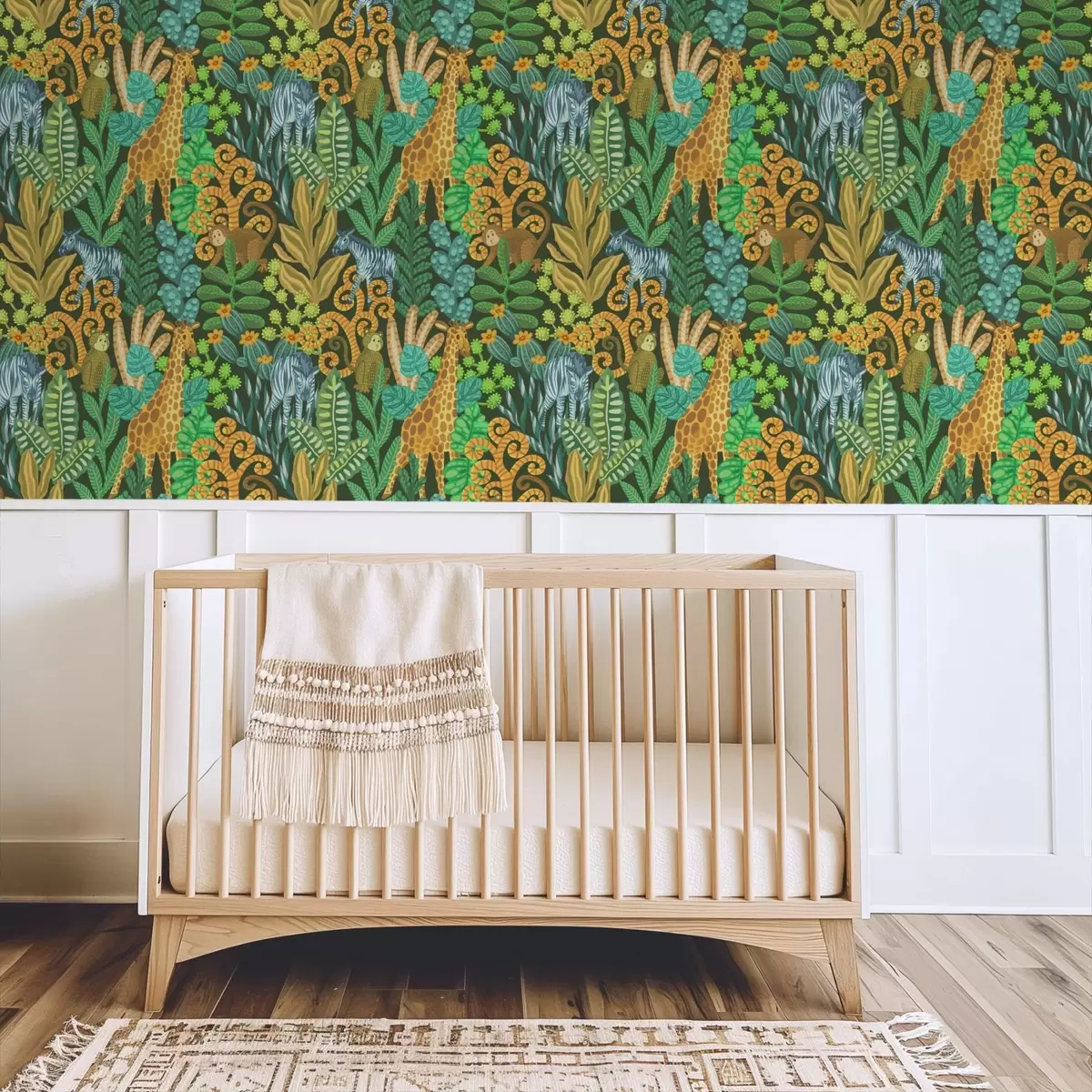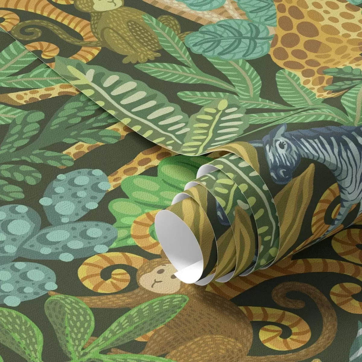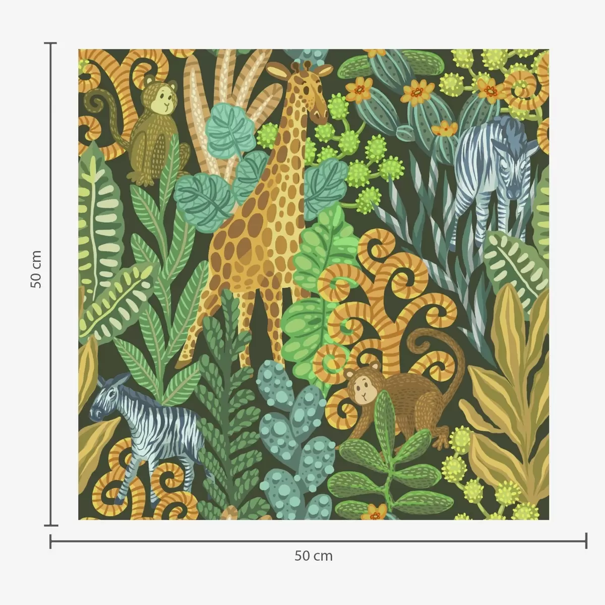 Tapeta Gusta džungla sa životinjama na tamnozelenoj pozadini br. a01000v2