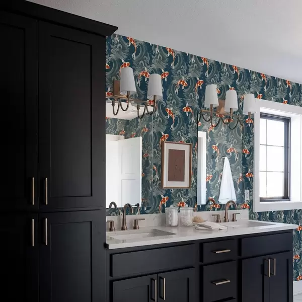 Tapeta Koi ribe plivaju među dramatičnim oceanskim valovima br. a01019