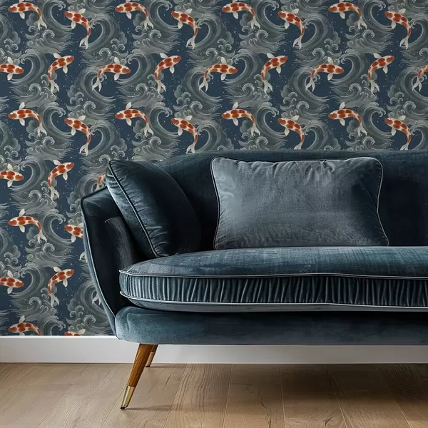 Tapeta Koi ribe plivaju među dramatičnim oceanskim valovima br. a01019