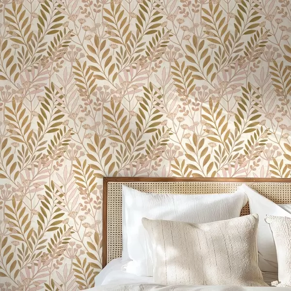 Tapeta Lagani botanički uzorak s nježnim ružičastim i zobenim listovima br. a01020v1