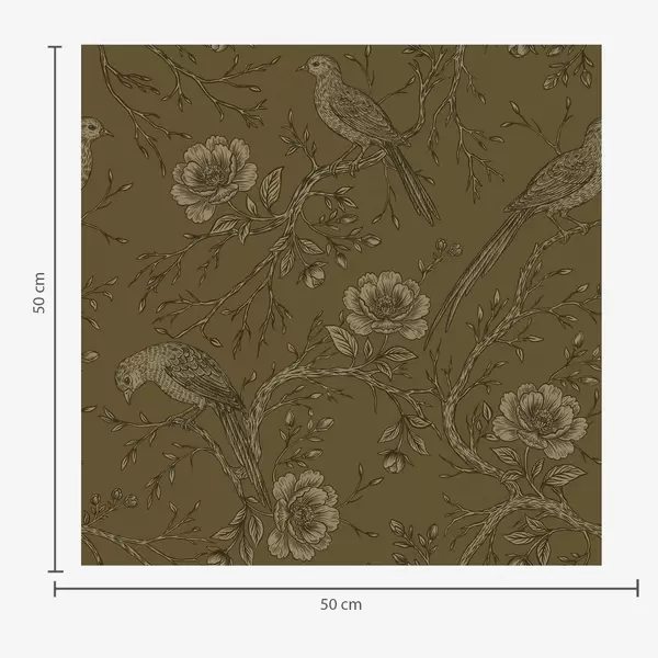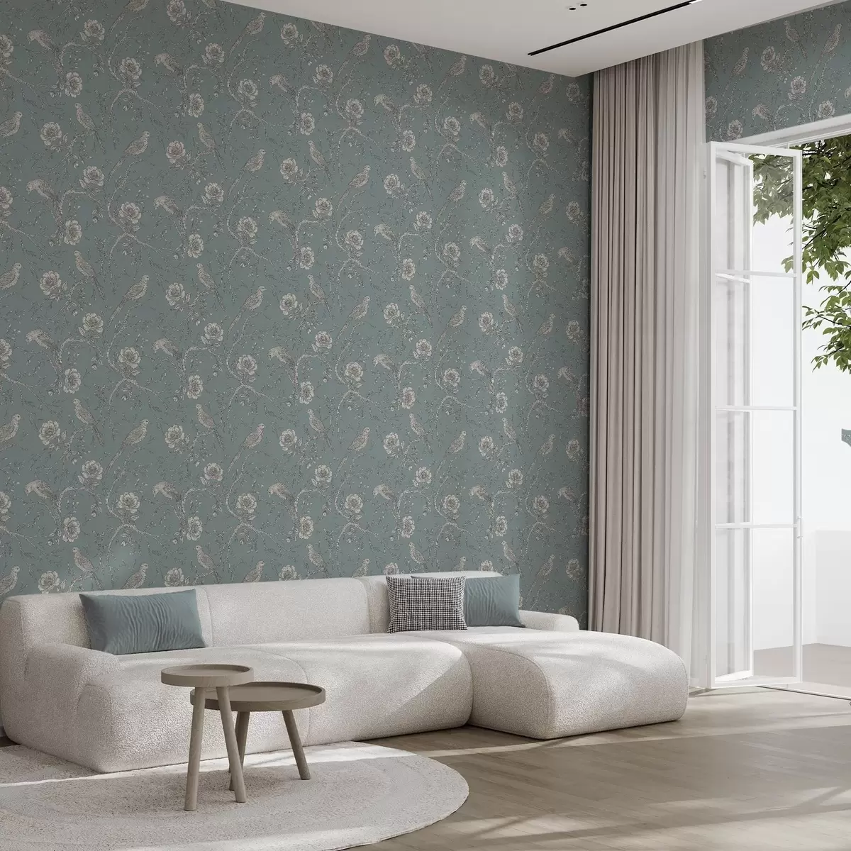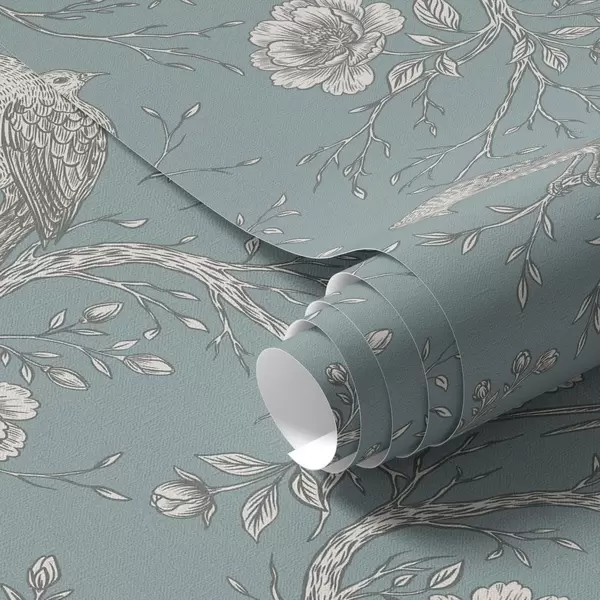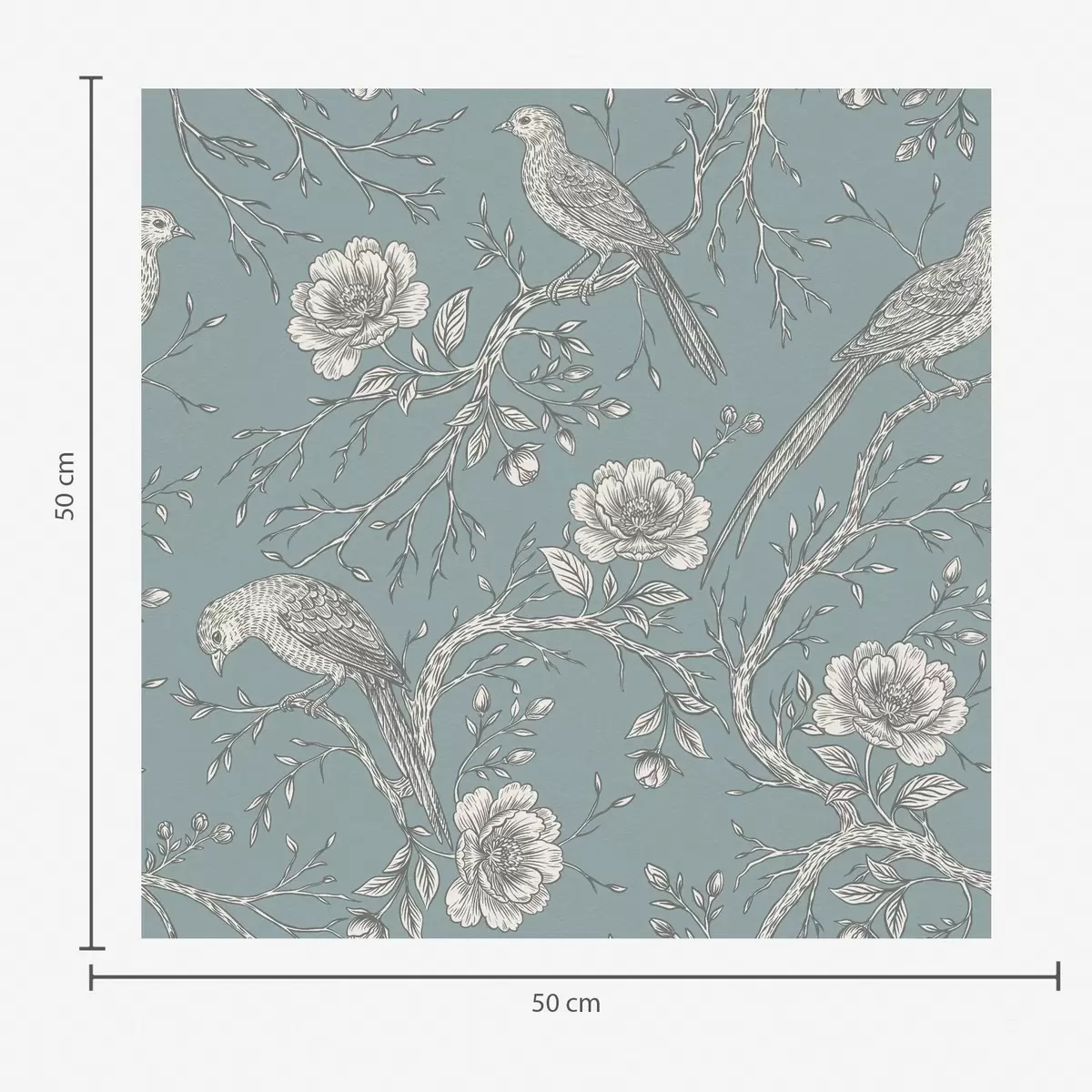 Tapeta Konturno nacrtane ptice na granama, prigušena plava pozadina br. a01022